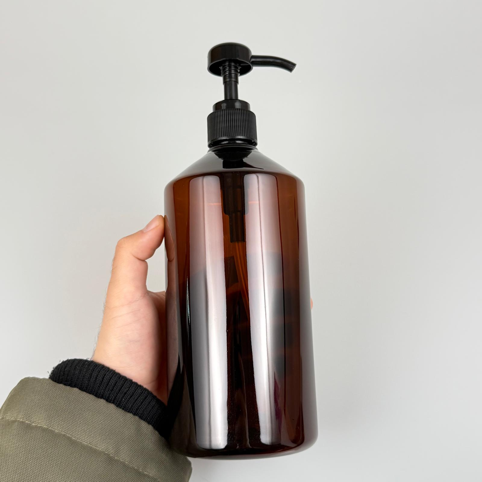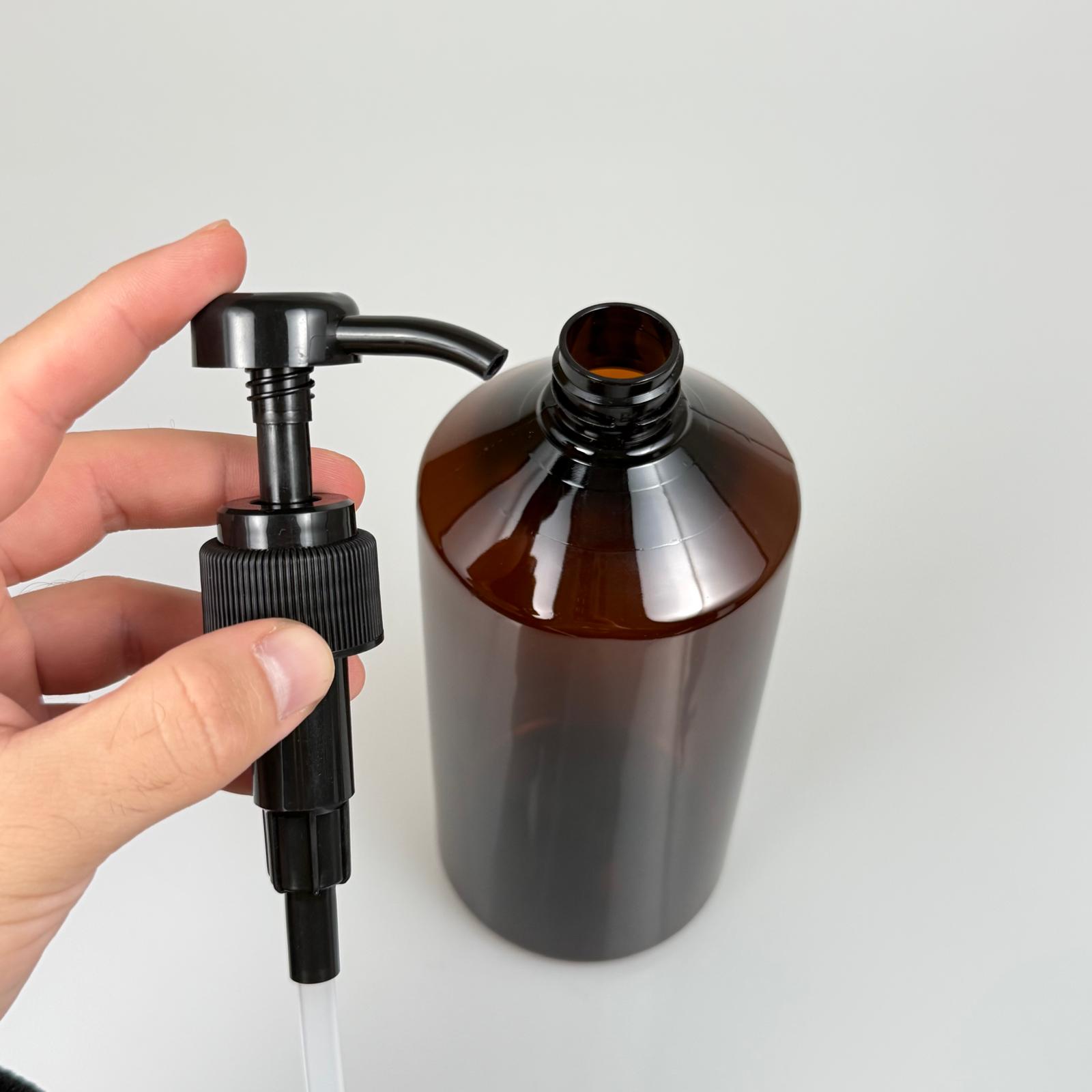 1000 CC AMBER KAHVERENGİ PET KÜT MODEL ŞİŞE - SİYAH DOZAJ POMPALI (HER BASMADA 4 CC SIVI ATAR) - 1000 ML POMPALI ŞİŞE - ŞURUP, ŞAMPUAN, KREM GİBİ YOĞUN KIVAMLI SIVILARDA KULLANILIR - 256 adet