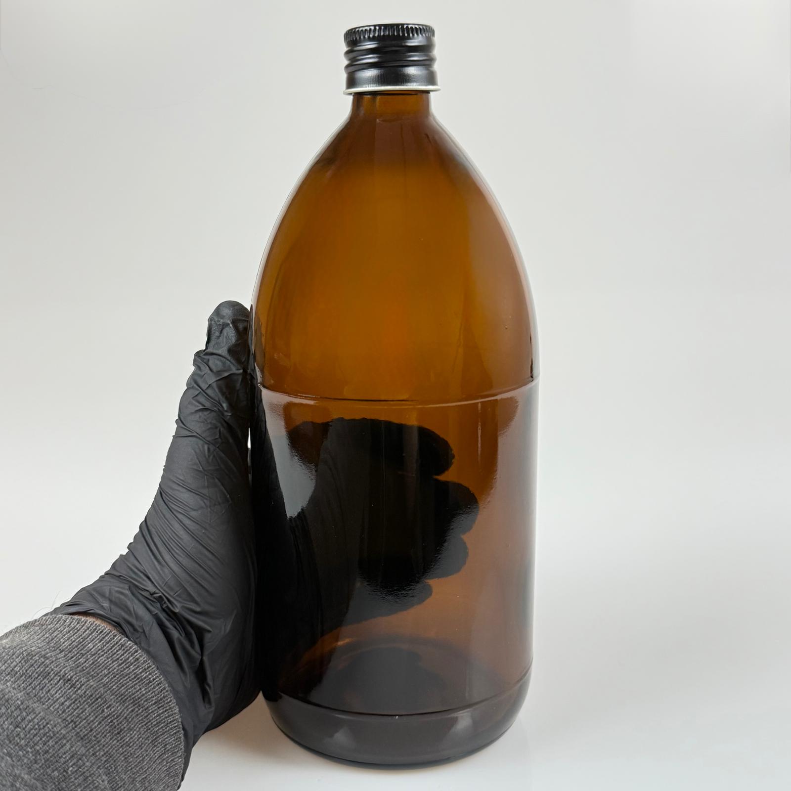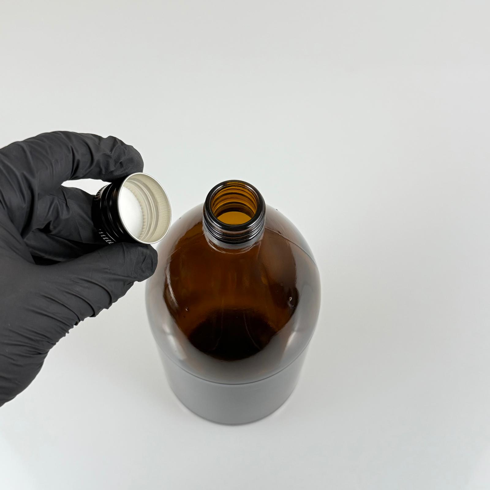 1000 CC AMBER TOMBUL ÖZEL SERİ CAM ŞİŞE - METAL ALÜMİNYUM SİYAH KÖPÜK CONTALI KAPAKLI - 1000 ML CAM ECZA ŞİŞESİ - KAHVERENGİ - 56 adet
