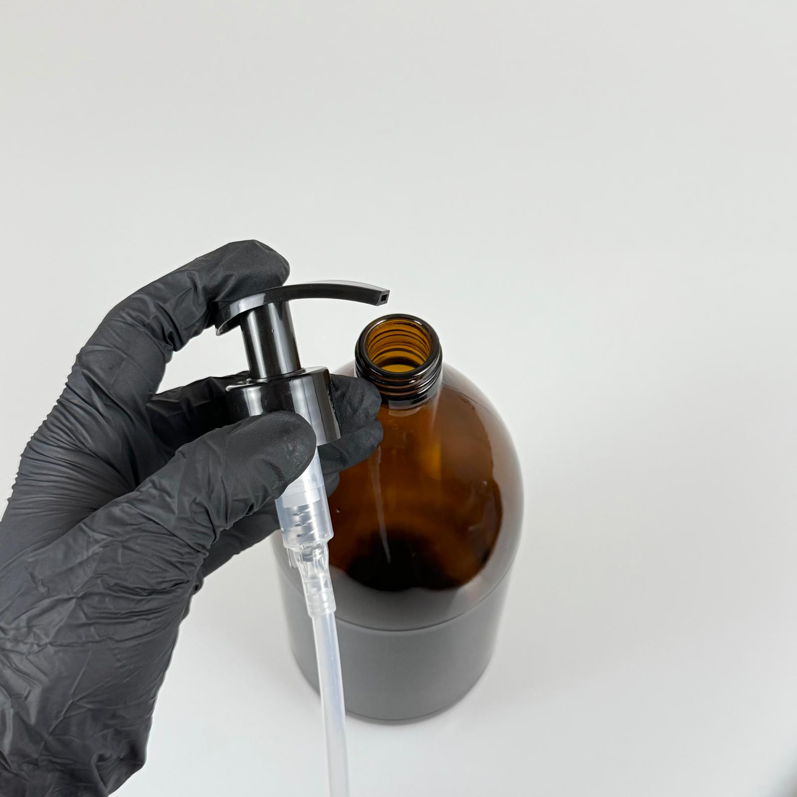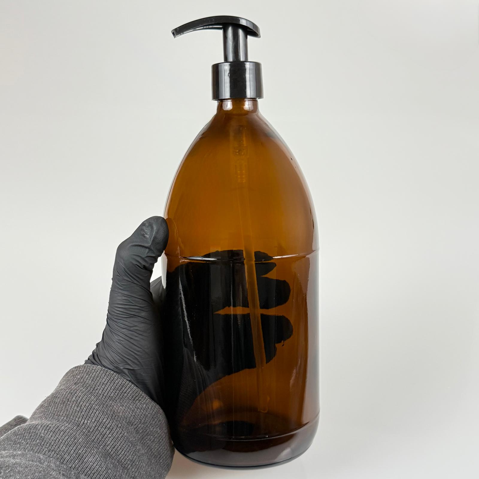 1000 CC AMBER TOMBUL ÖZEL SERİ CAM ŞİŞE - SİYAH POMPALI - 1000 ML CAM ECZA ŞİŞESİ - KAHVERENGİ - 56 adet