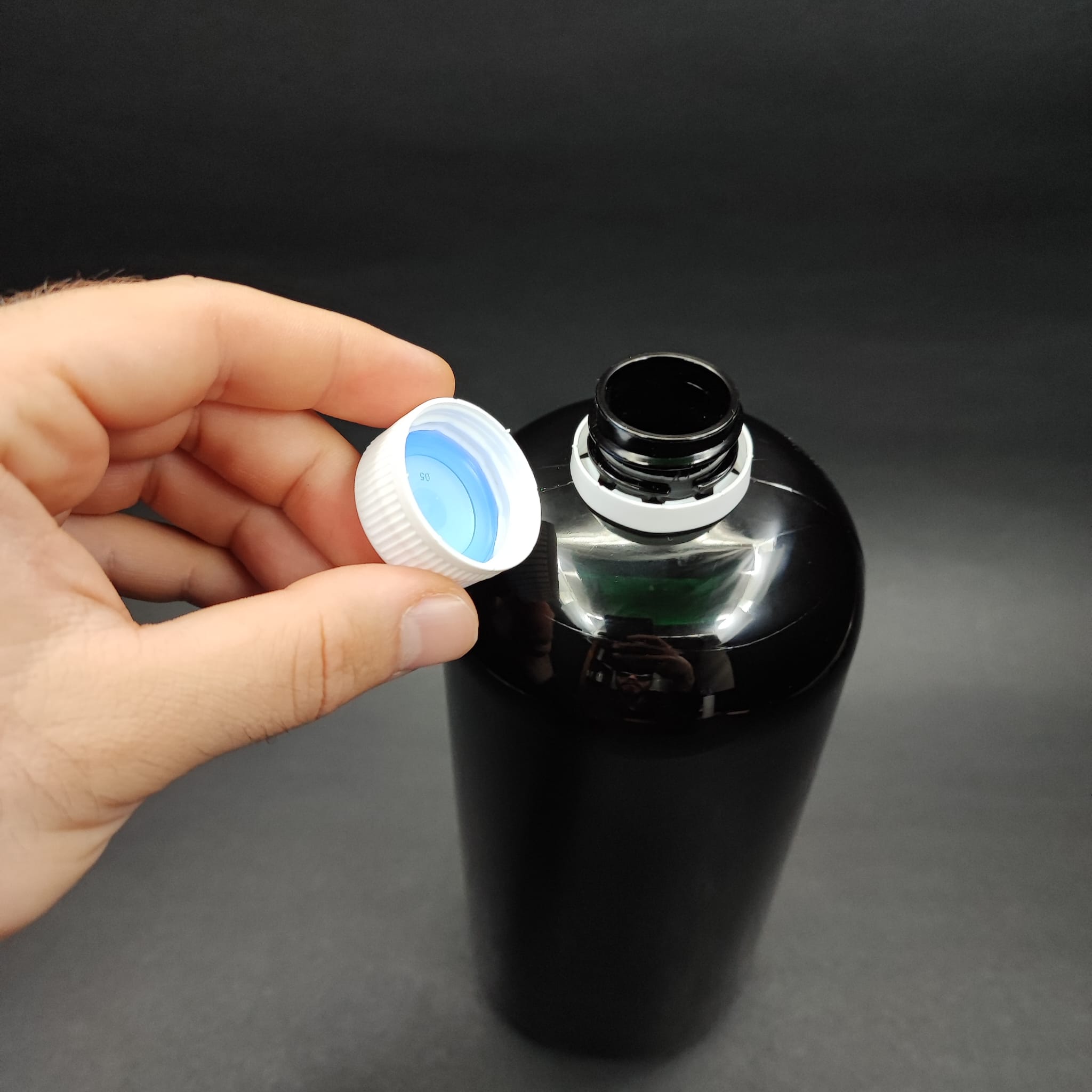 1000 CC SİYAH PLASTİK ŞİŞE - BEYAZ KİLİTLİ CONTALI KAPAKLI - 1000 ML SİYAH BOŞ PET ŞİŞE - 256 adet