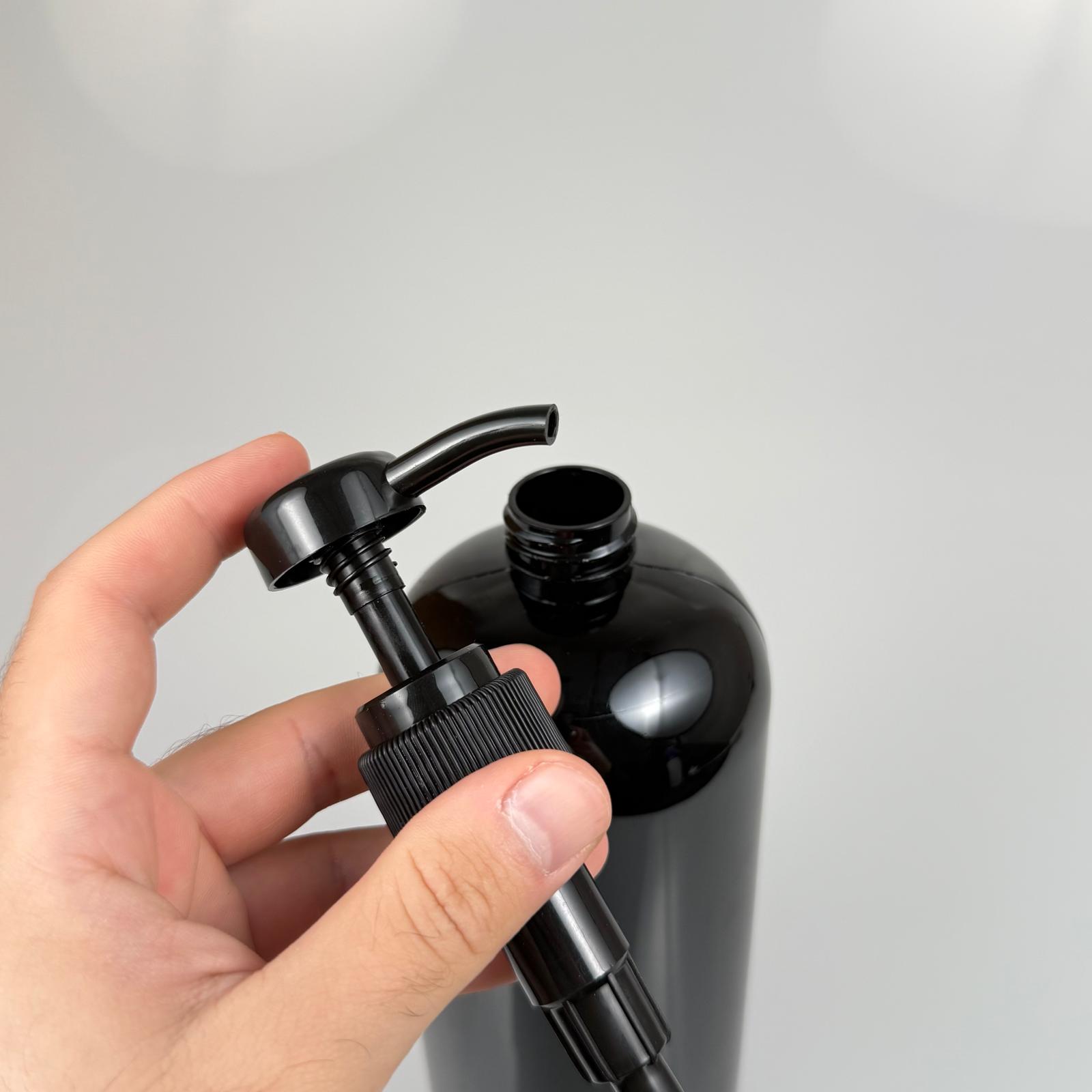 1000 CC SİYAH ŞAMPUAN MODEL PET ŞİŞE - SİYAH DOZAJ POMPALI (HER BASMADA 4 CC SIVI ATAR) - 1 LT POMPALI ŞİŞE - ŞURUP, ŞAMPUAN, KREM GİBİ YOĞUN KIVAMLI SIVILARDA KULLANILIR - 256 adet