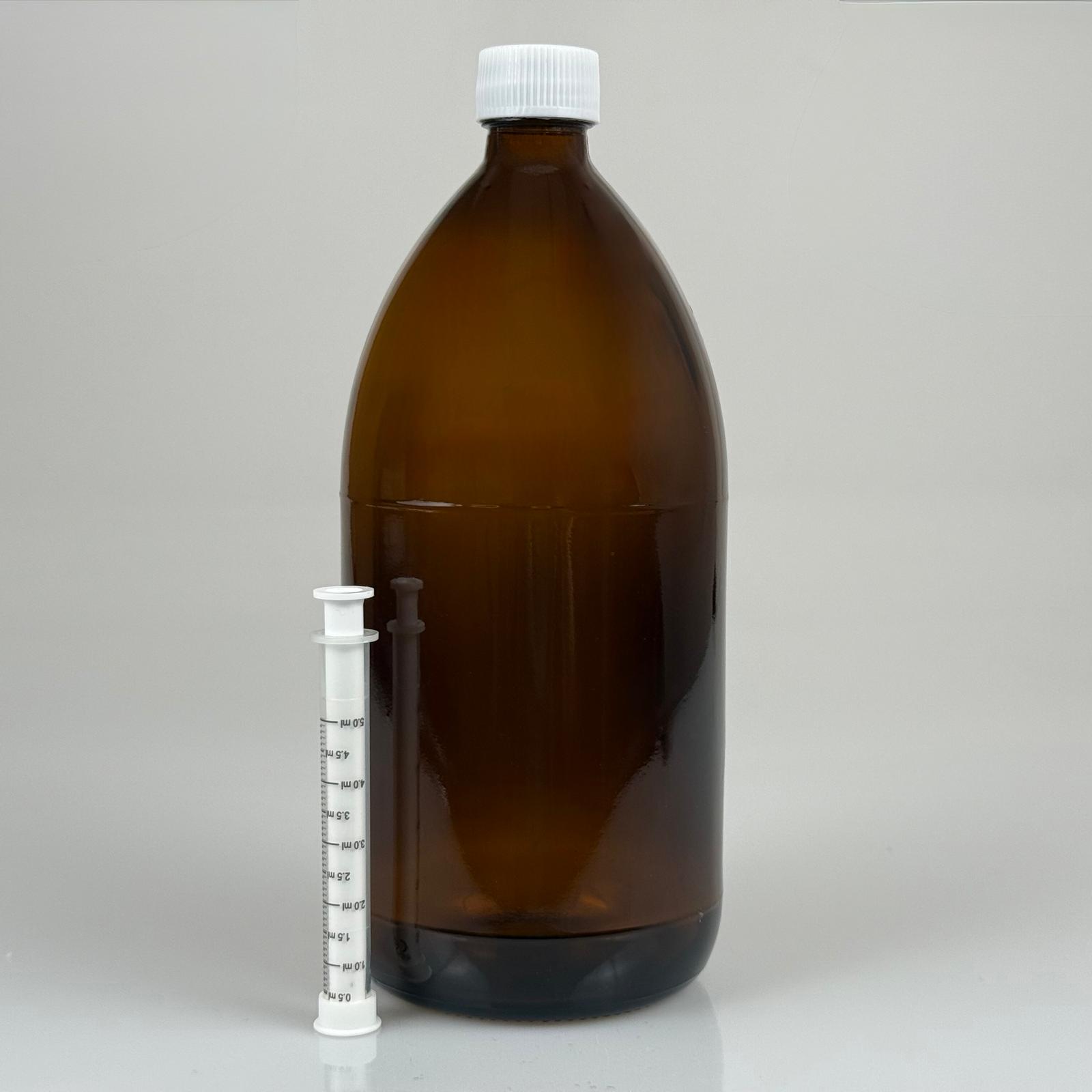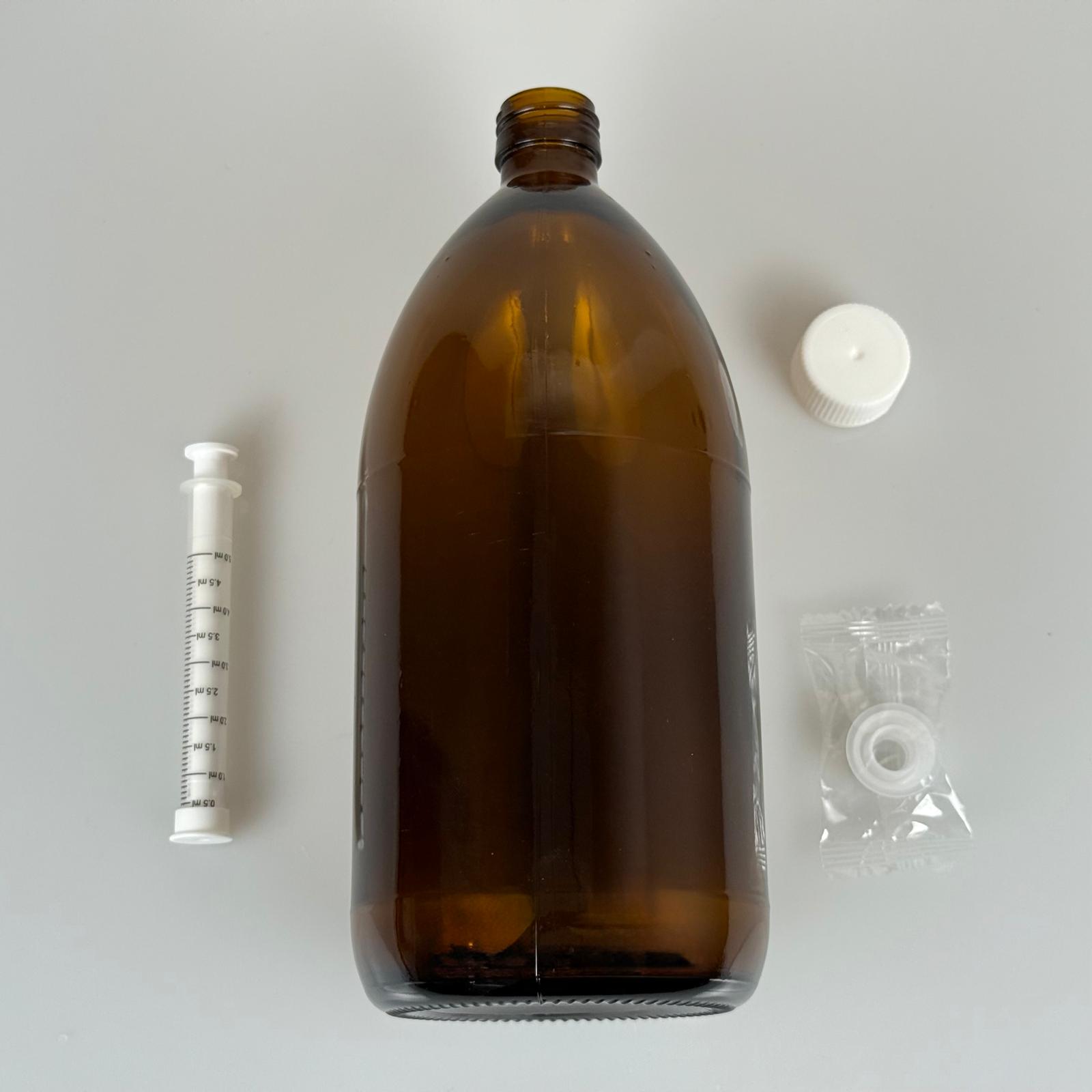 1000 ML CAM ECZA ŞİŞESİ + 5 ML DOZAJ PİPETİ + DOZAJ TIPASI + CONTALI PLASTİK KAPAK TAKIM - 56 adet