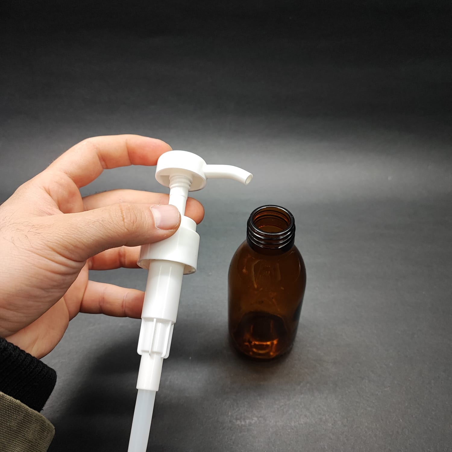 125 CC AMBER CAM ŞİŞE + BEYAZ DOZAJ POMPALI (HER BASMADA 4 CC SIVI ATAR) - 125 ML POMPALI ŞİŞE - ŞURUP, ŞAMPUAN, KREM GİBİ YOĞUN KIVAMLI SIVILARDA KULLANILIR - 99 adet