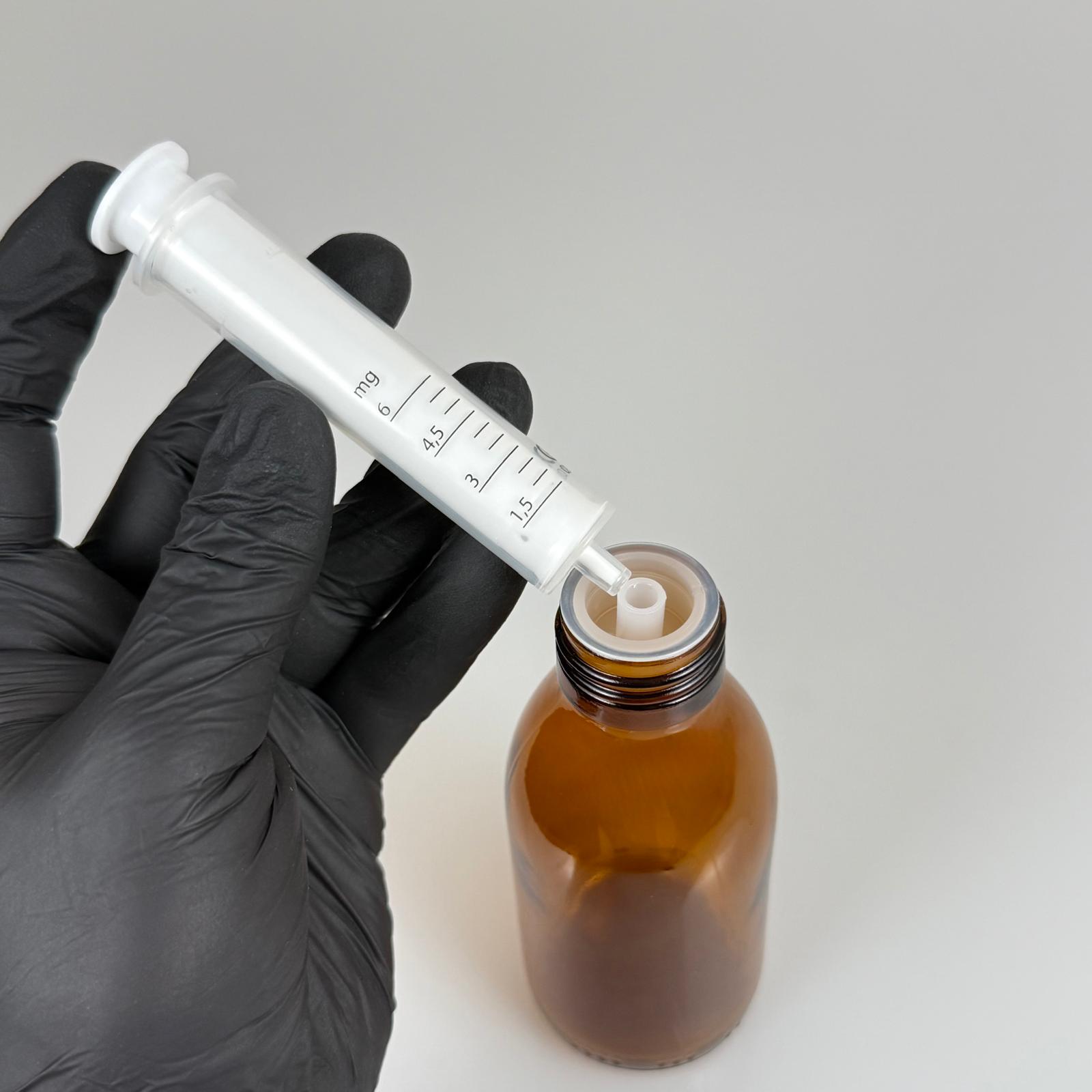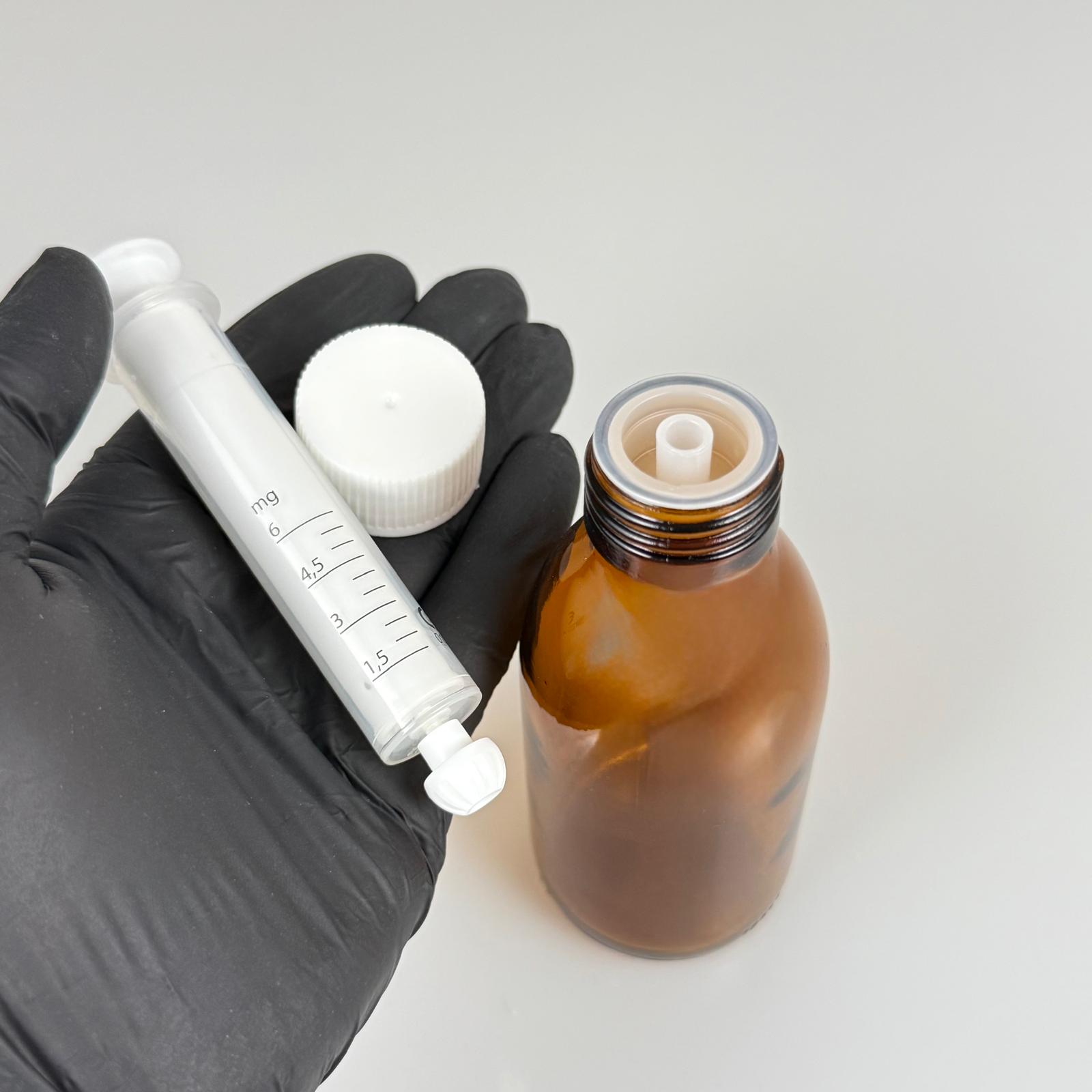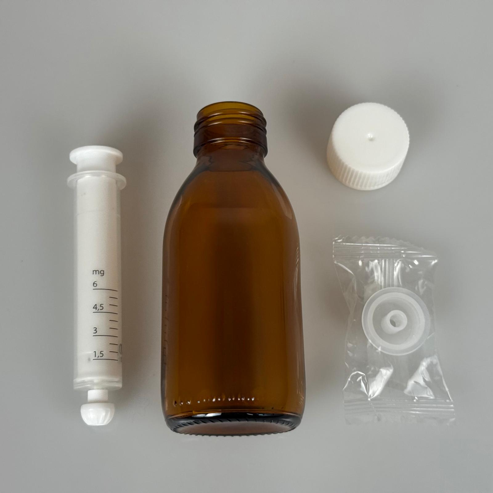 125 ML CAM ECZA ŞİŞESİ + 6 ML DOZAJ PİPETİ + DOZAJ TIPASI + CONTALI PLASTİK KAPAK TAKIM - 99 adet
