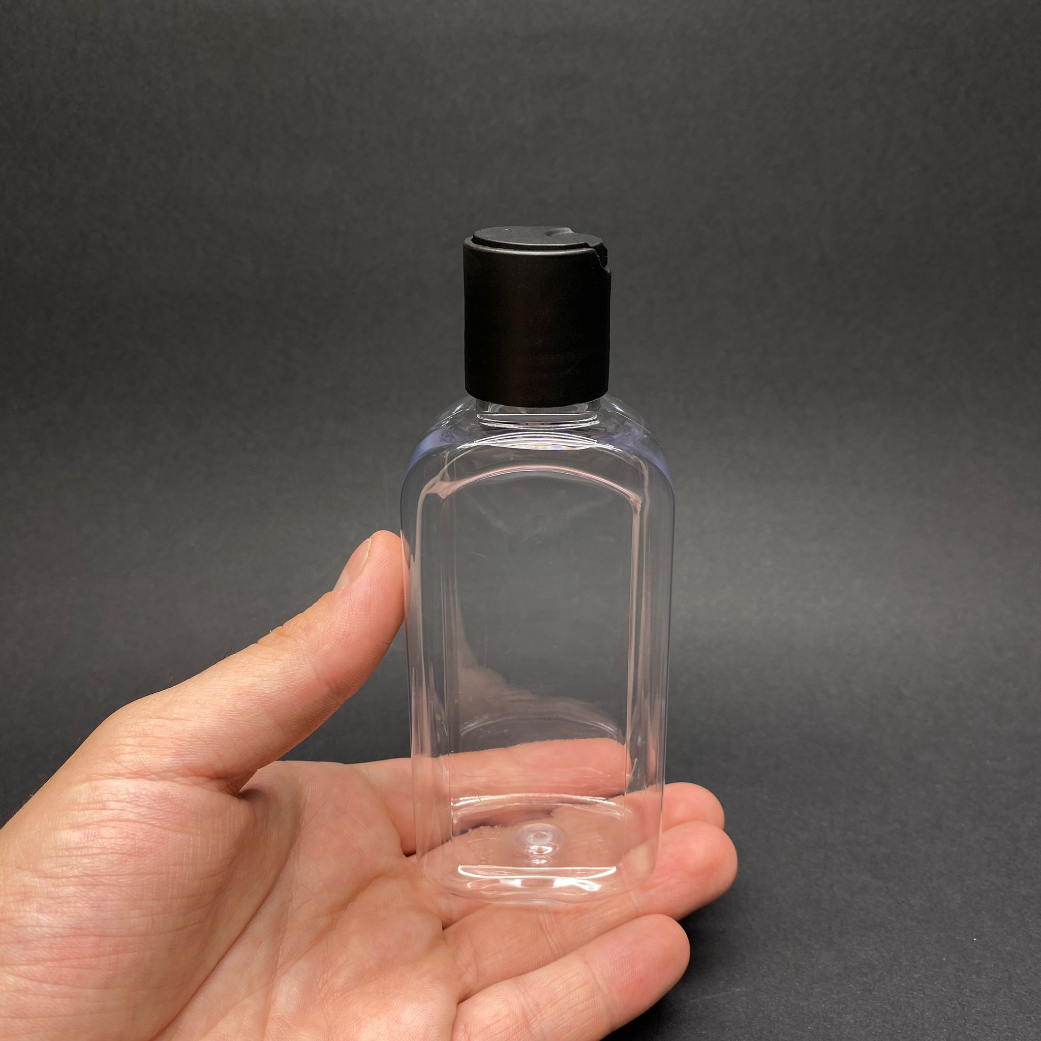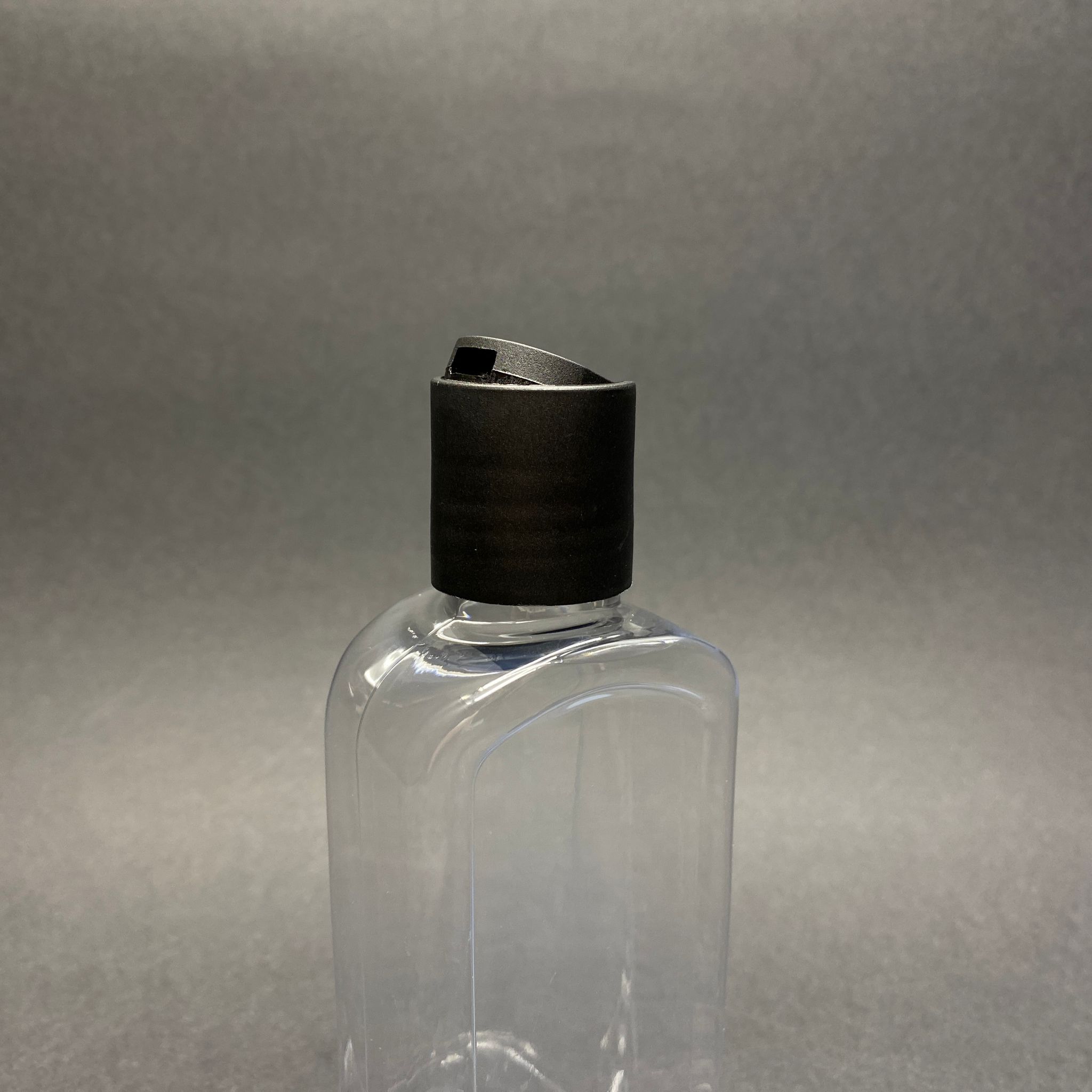 140 CC YASSI MODEL PET ŞİŞE - SİYAH DİSKTOP ŞAMPUAN KAPAKLI - AĞIZ ÇAPI 24 MM - ŞEFFAF - 540 adet