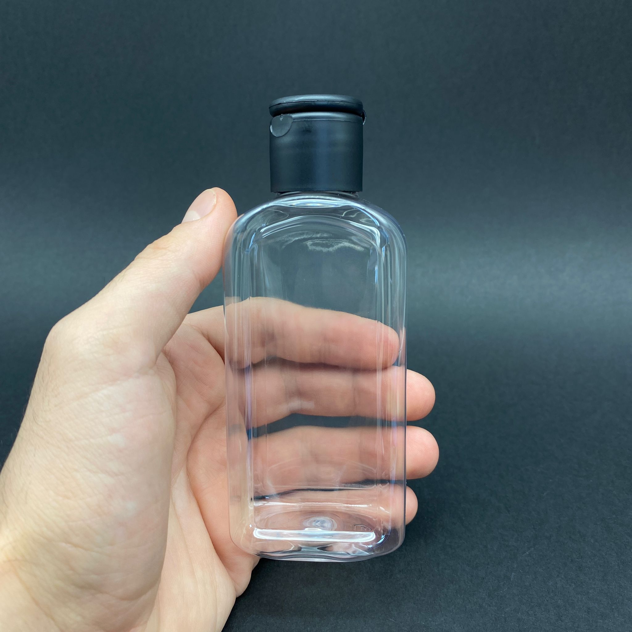 140 CC YASSI ŞİŞE - SİYAH FLİPTOP AKITICILI KAPAKLI - 140 ML PLASTİK YASSI ŞİŞE - 540 adet