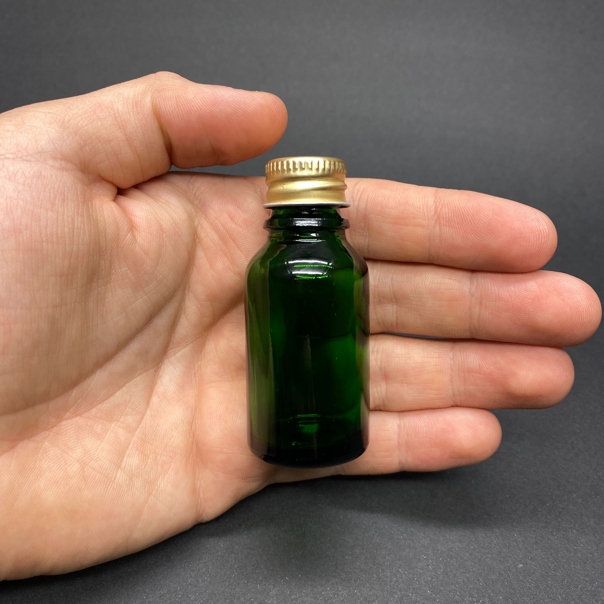 15 CC YEŞİL CAM ŞİŞE - METAL GOLD CONTALI KAPAKLI - 15 ML YEŞİL CAM ŞİŞE - 312 adet