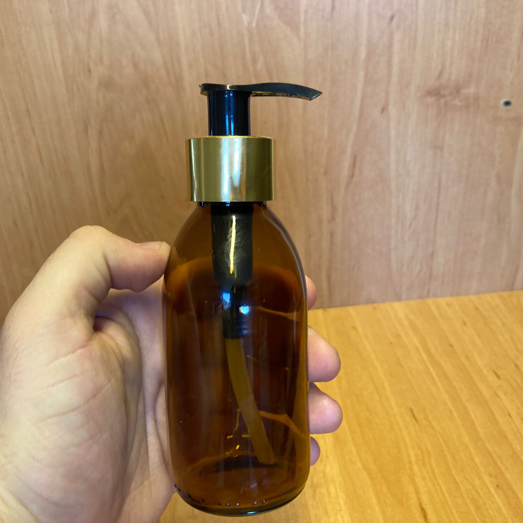 150 CC AMBER CAM ŞİŞE - GOLD POMPALI - 150 ML KAHVERENGİ POMPALI ŞİŞE - 144 adet