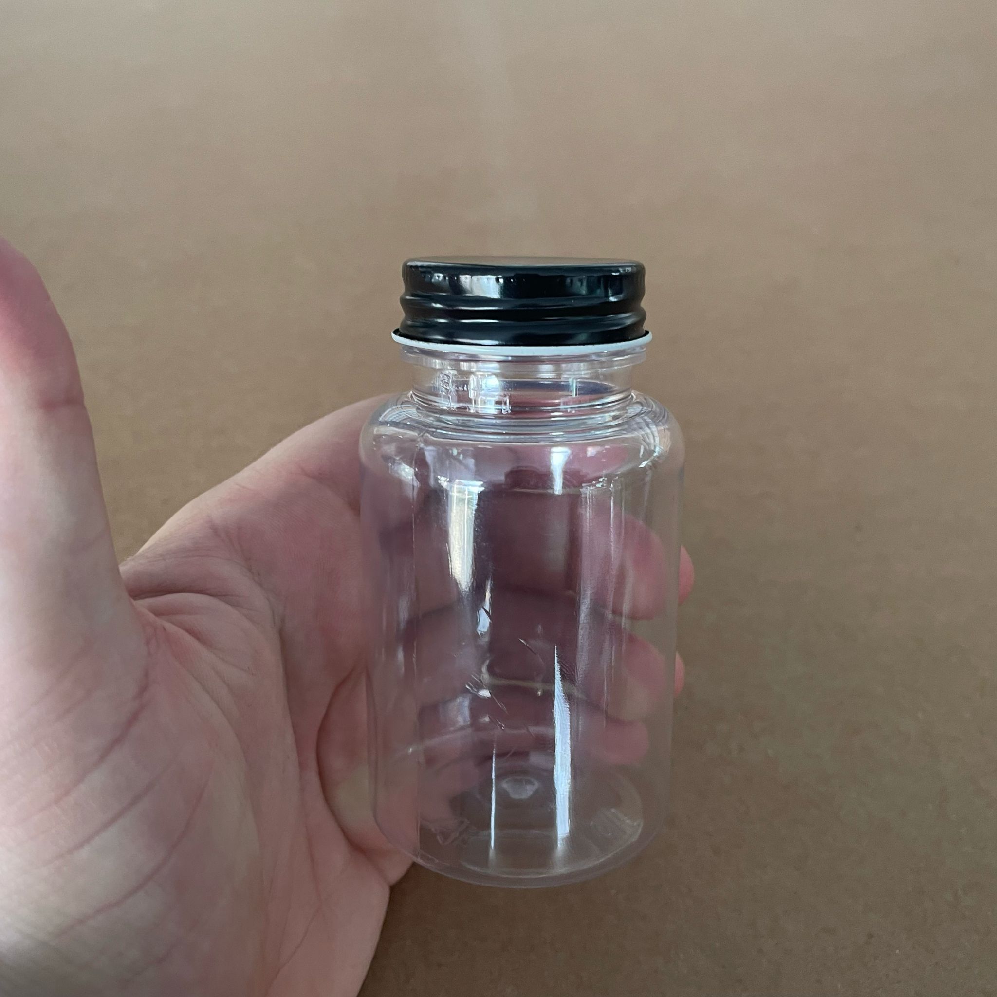 150 CC ŞEFFAF PET TABLET ŞİŞESİ - SİYAH METAL KAPAKLI - 150 ML KAPSÜL KUTUSU - İLAÇ ŞİŞESİ - MEDİKAL HAP ŞİŞESİ - FARMASÖTİK KAVANOZ - 380 adet