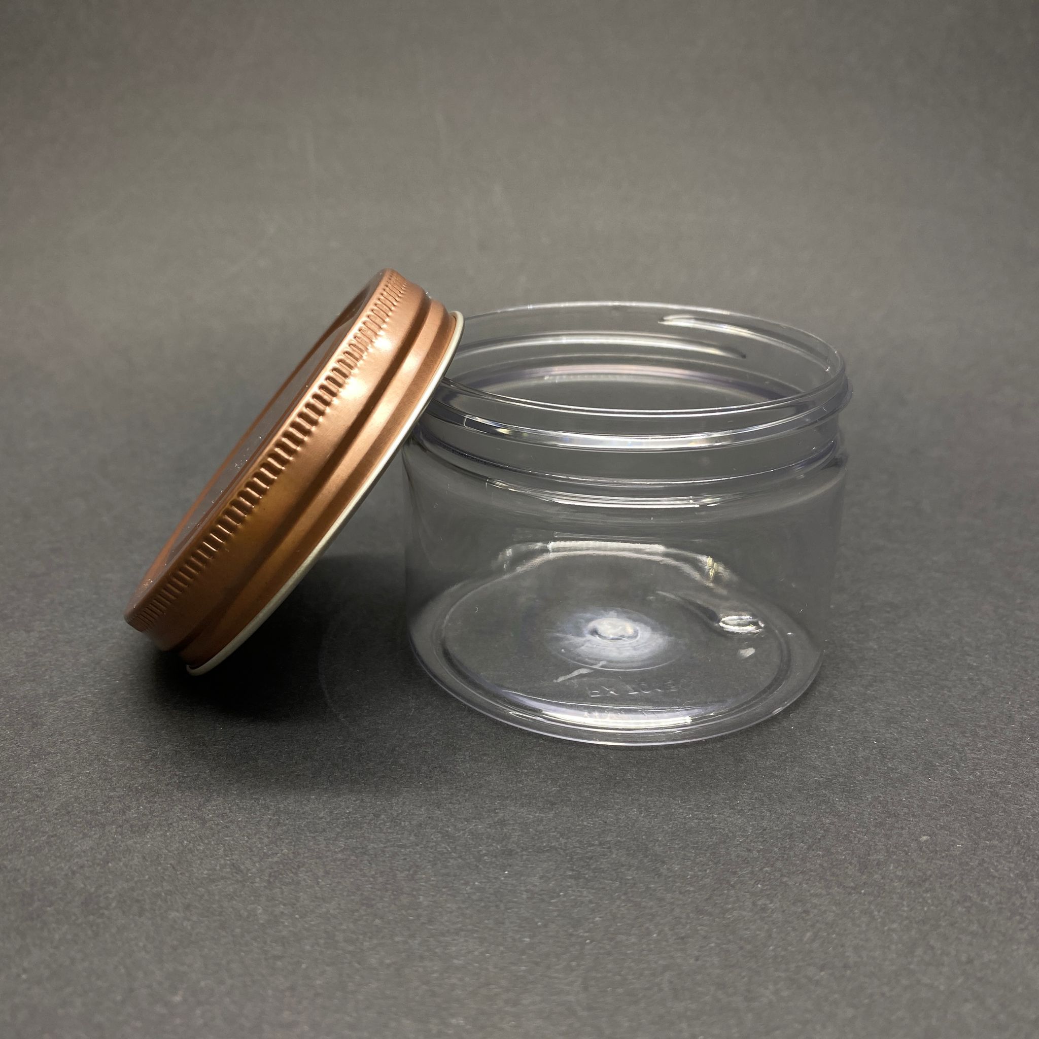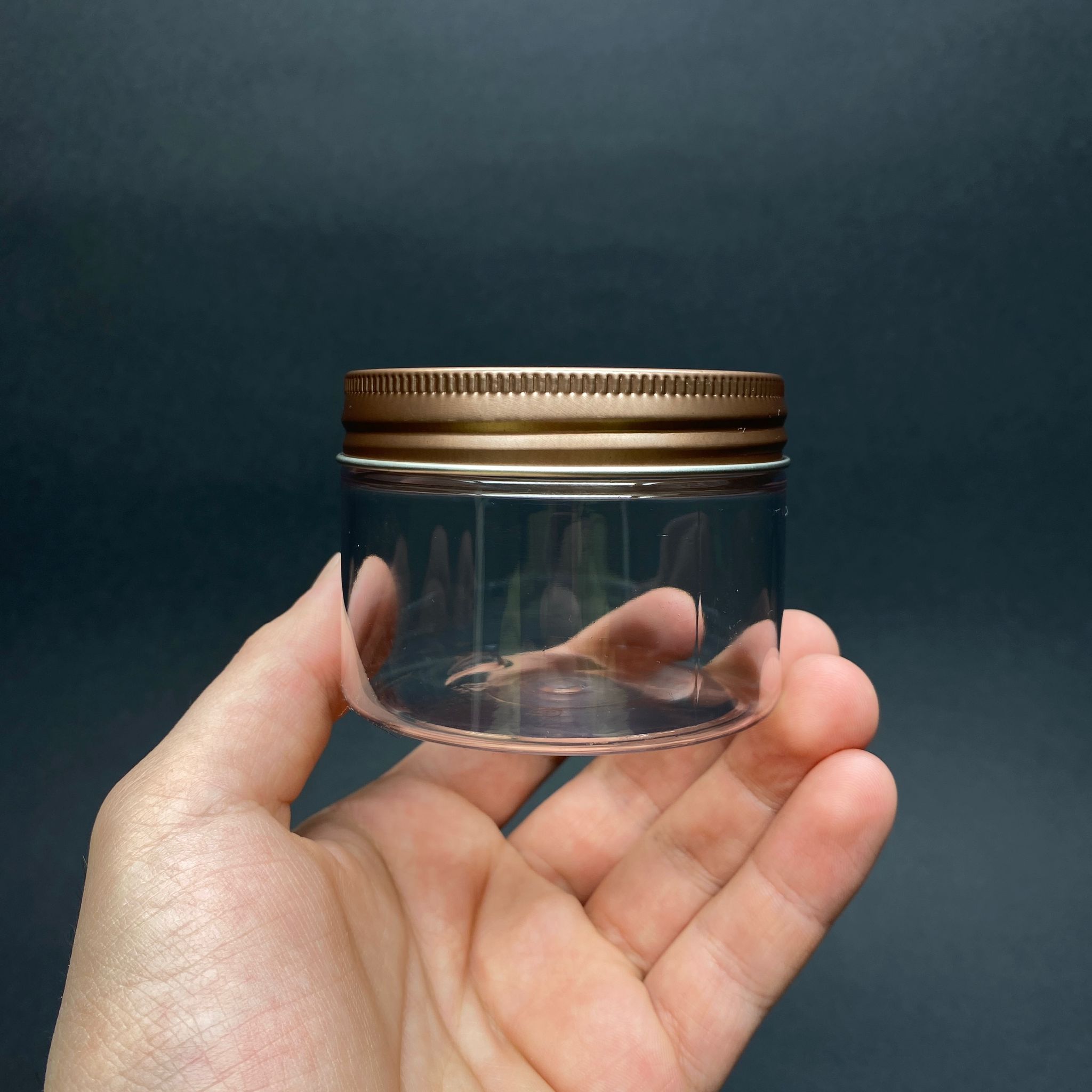 150 CC ŞEFFAF SERT PLASTİK KAVANOZ - BRONZ METAL KAPAKLI - 150 ML METAL KAPAKLI PLASTİK KAVANOZ - KOZMETİK KAVANOZ, GIDA KAVANOZU VE KREM KAVANOZU OLARAK KULLANABİLİRSİNİZ - 572 adet