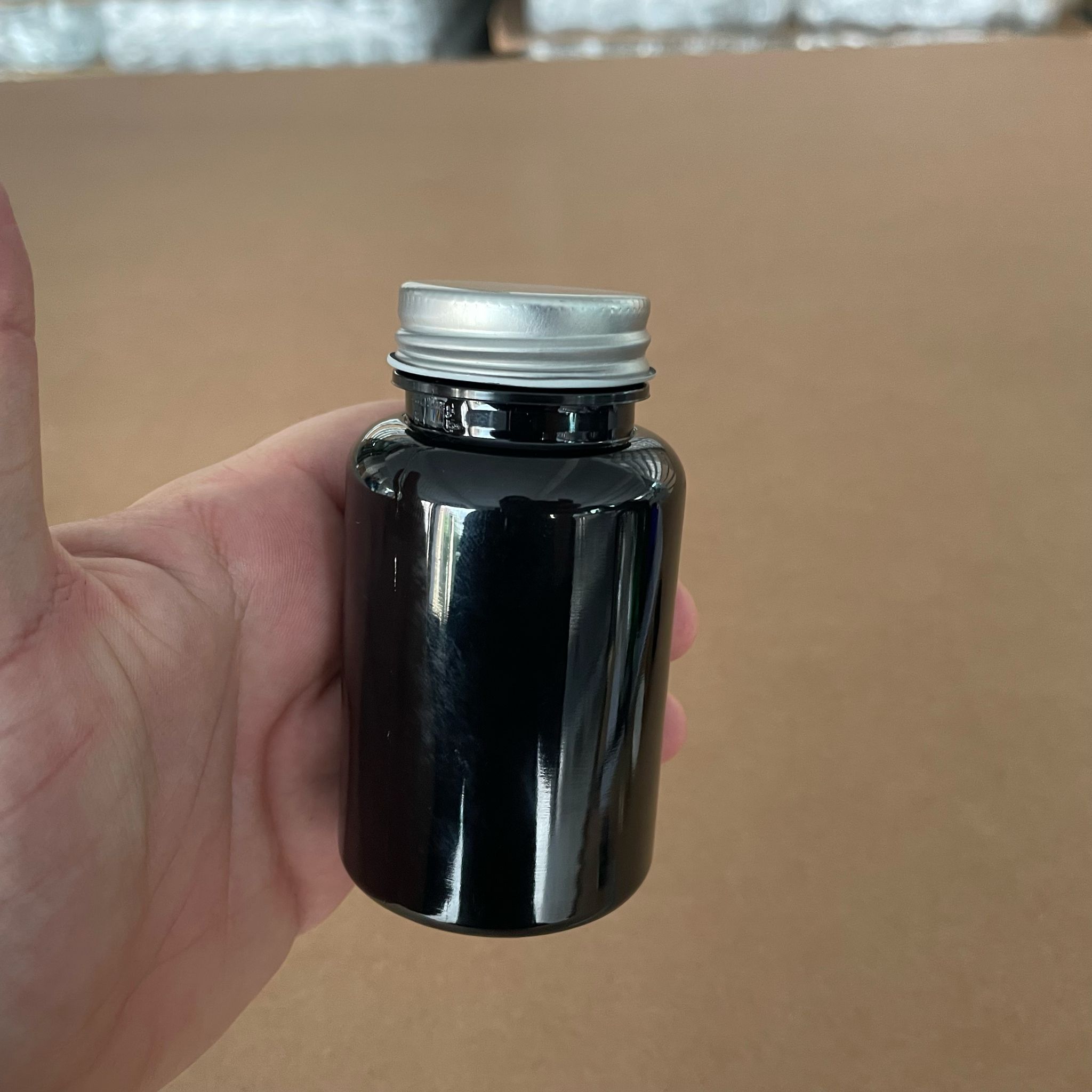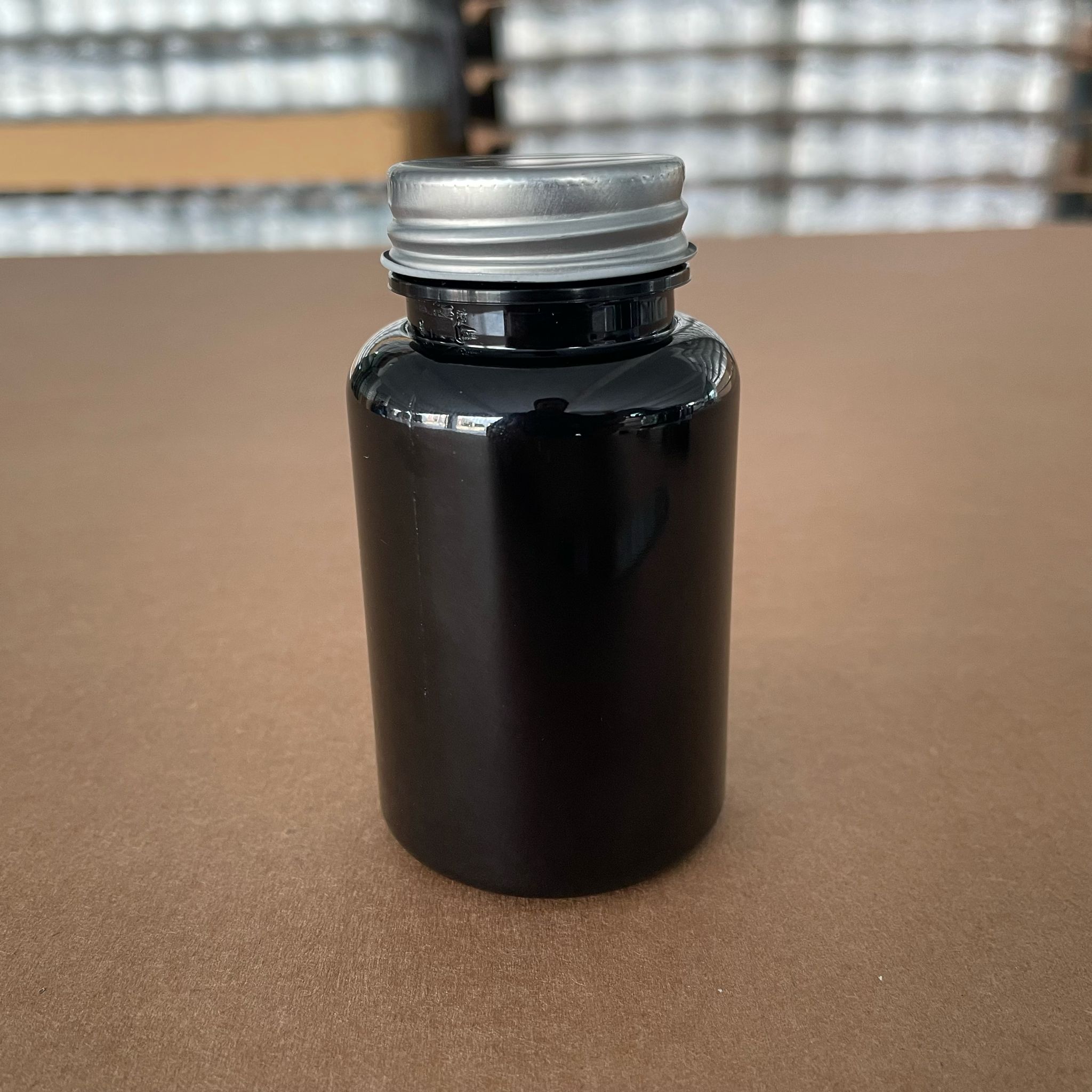 150 CC SİYAH PET TABLET ŞİŞESİ - GÜMÜŞ METAL KAPAKLI - 150 ML KAPSÜL KUTUSU - İLAÇ ŞİŞESİ - MEDİKAL HAP ŞİŞESİ - FARMASÖTİK KAVANOZ - 380 adet