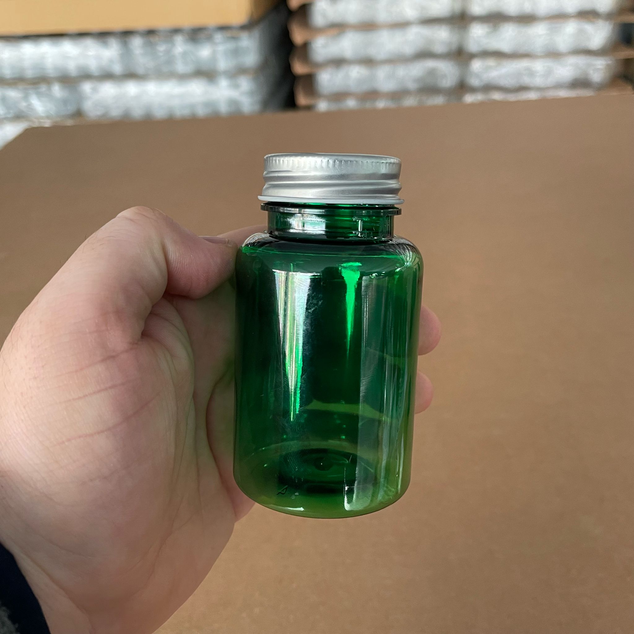 150 CC YEŞİL PET TABLET ŞİŞESİ - GÜMÜŞ METAL KAPAKLI - 150 ML KAPSÜL KUTUSU - İLAÇ ŞİŞESİ - MEDİKAL HAP ŞİŞESİ - FARMASÖTİK KAVANOZ - 380 adet