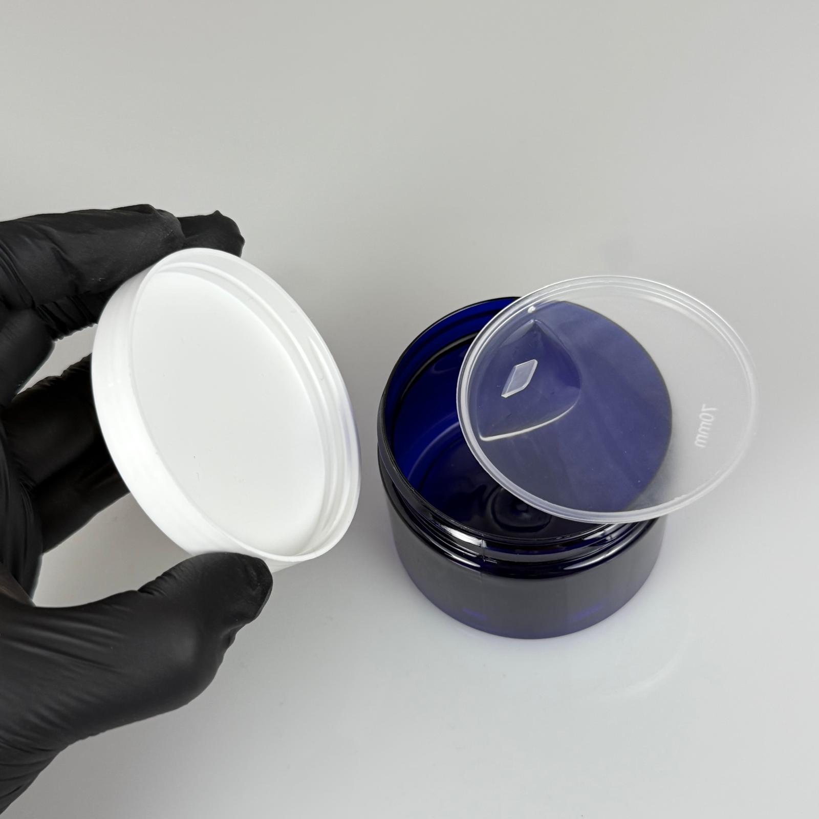 150 ML SERT PET KAVANOZ + BEYAZ PLASTİK KAPAK + İÇ TIPA - 150 CC KALIN MAVİ PLASTİK KAVANOZ BEYAZ PLASTİK KAPAKLI İÇ TIPALI TAKIM - KREM KAVANOZLARI - 572 adet