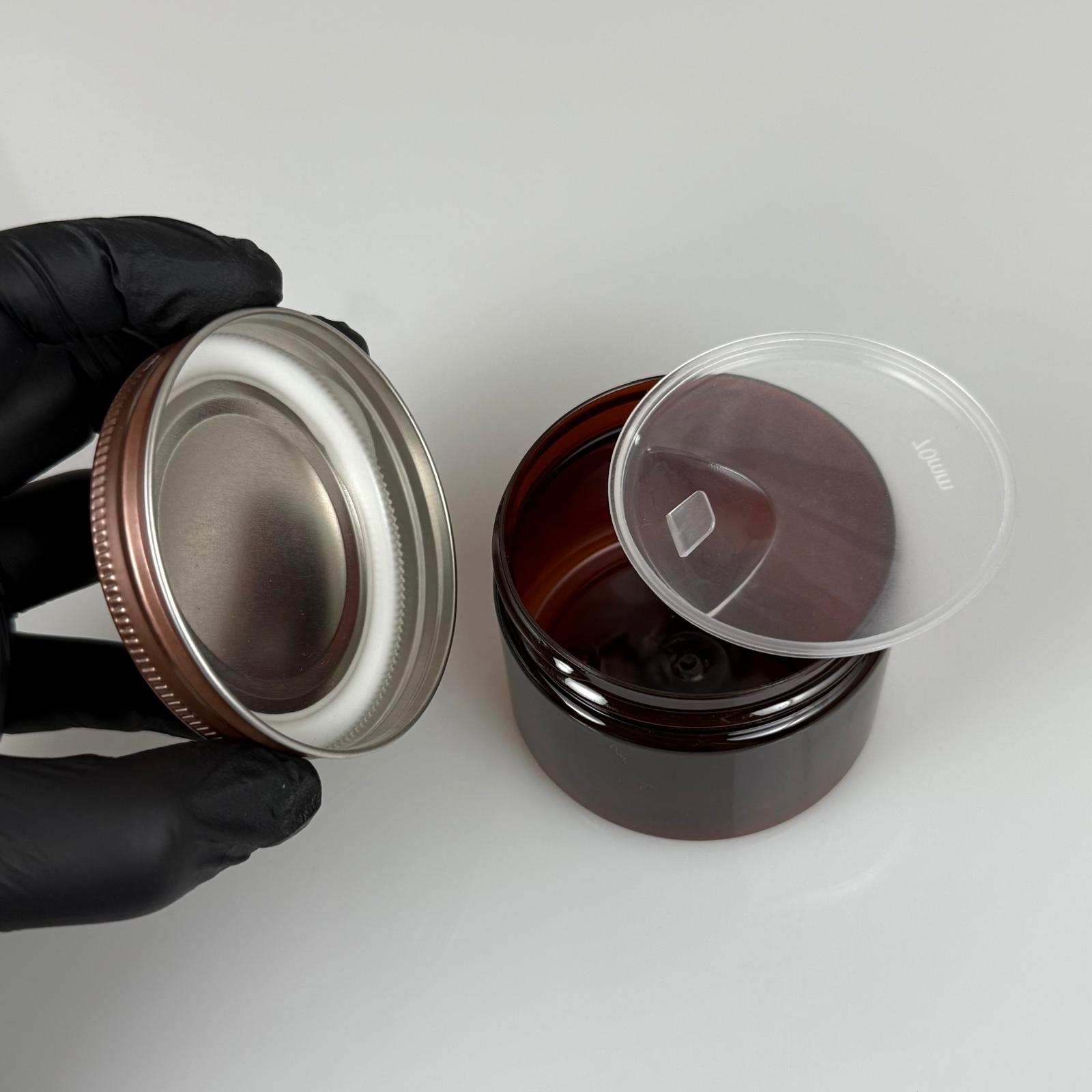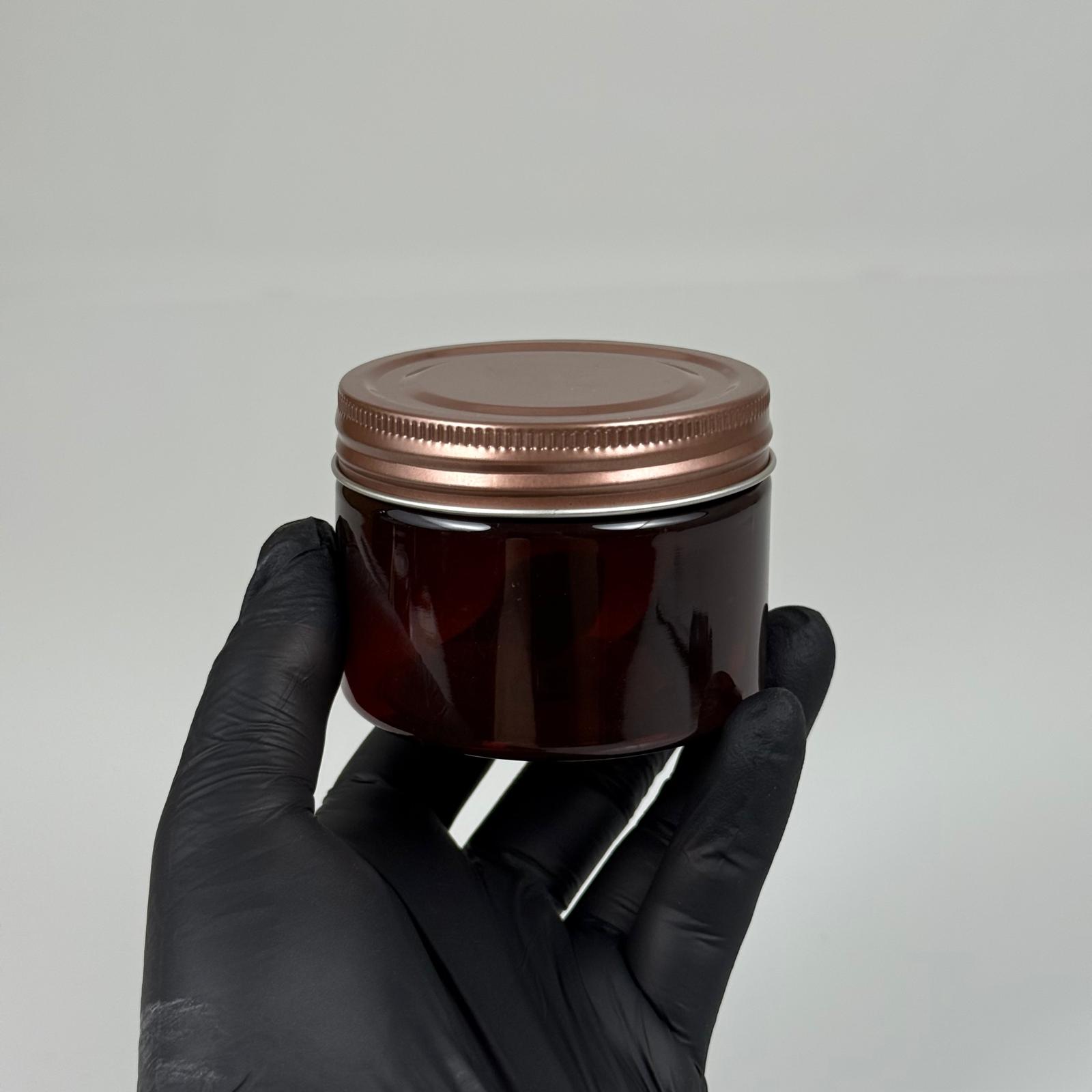 150 ML SERT PET KAVANOZ + BRONZ METAL KAPAK + İÇ TIPA - 150 CC KALIN AMBER PLASTİK KAVANOZ BRONZ METAL KAPAKLI İÇ TIPALI TAKIM - KREM KAVANOZLARI - 572 adet