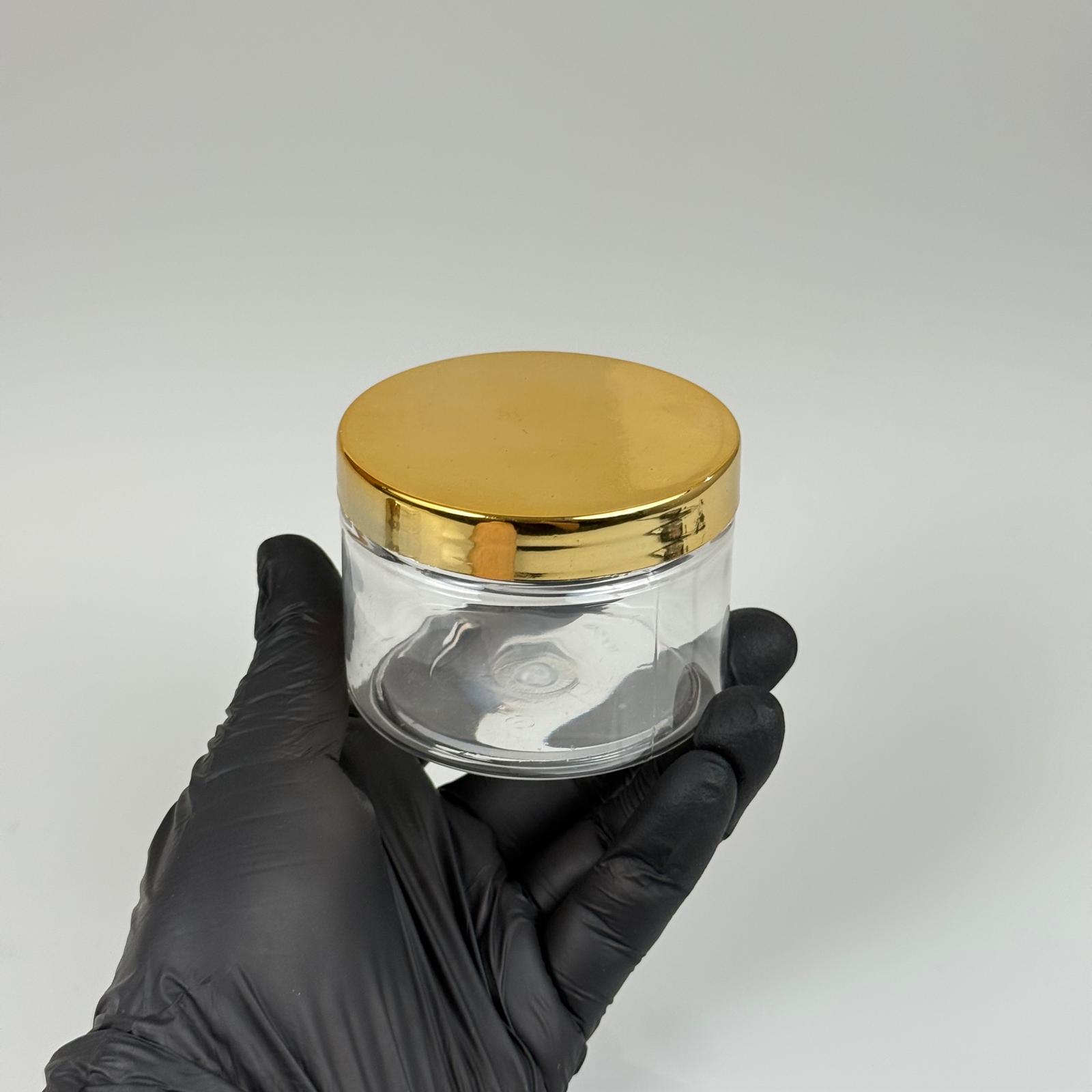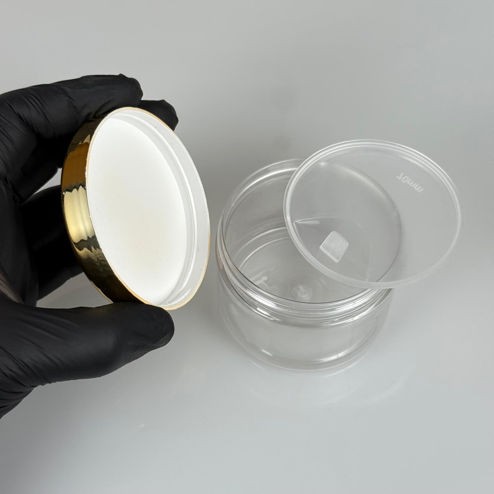 150 ML SERT PET KAVANOZ + GOLD KAPLAMALI PLASTİK KAPAK + İÇ TIPA - 150 CC KALIN ŞEFFAF PLASTİK KAVANOZ GOLD KAPLAMALI PLASTİK KAPAKLI İÇ TIPALI TAKIM - KREM KAVANOZLARI - 572 adet