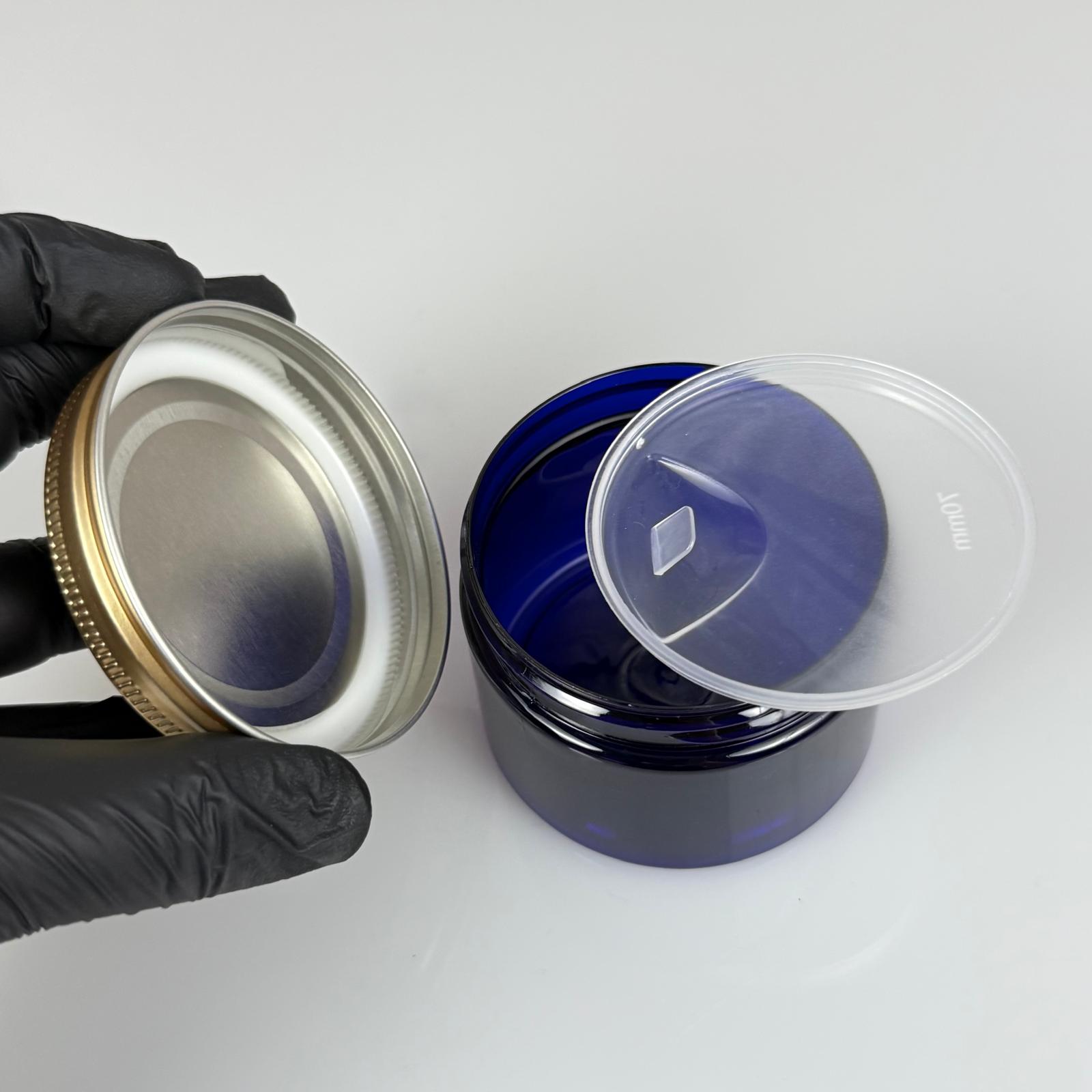 150 ML SERT PET KAVANOZ + GOLD METAL KAPAK + İÇ TIPA - 150 CC KALIN MAVİ PLASTİK KAVANOZ GOLD METAL KAPAKLI İÇ TIPALI TAKIM - KREM KAVANOZLARI - 572 adet