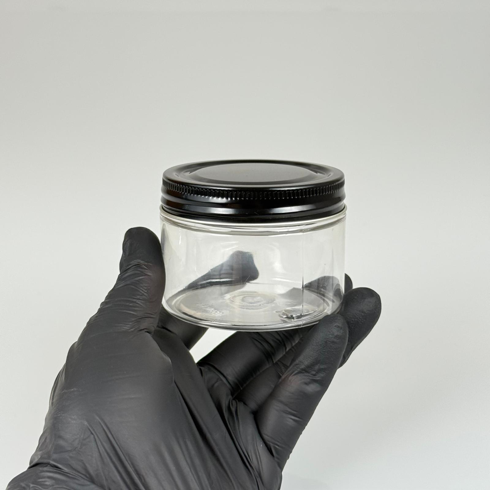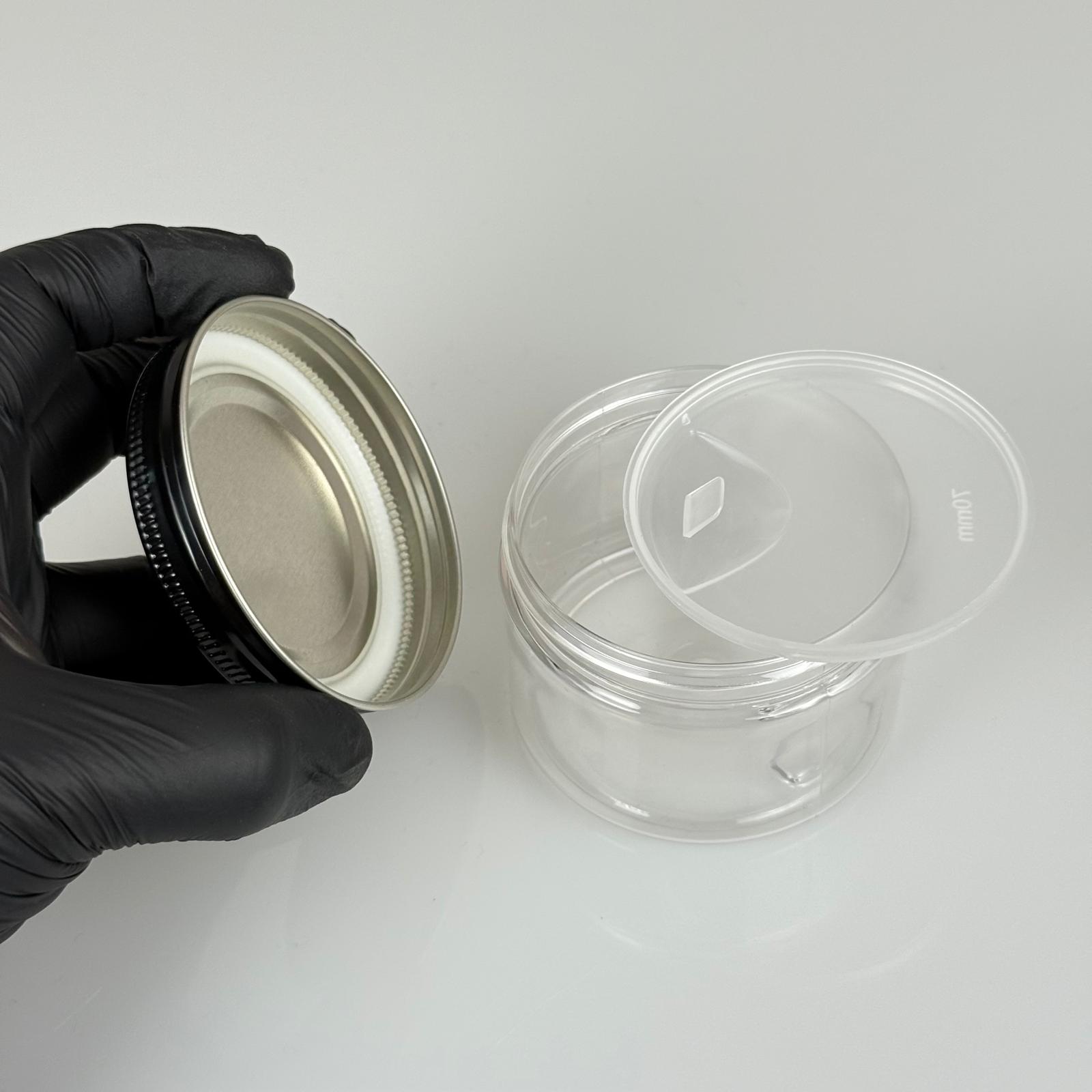 150 ML SERT PET KAVANOZ + SİYAH METAL KAPAK + İÇ TIPA - 150 CC KALIN ŞEFFAF PLASTİK KAVANOZ SİYAH METAL KAPAKLI İÇ TIPALI TAKIM - KREM KAVANOZLARI - 572 adet