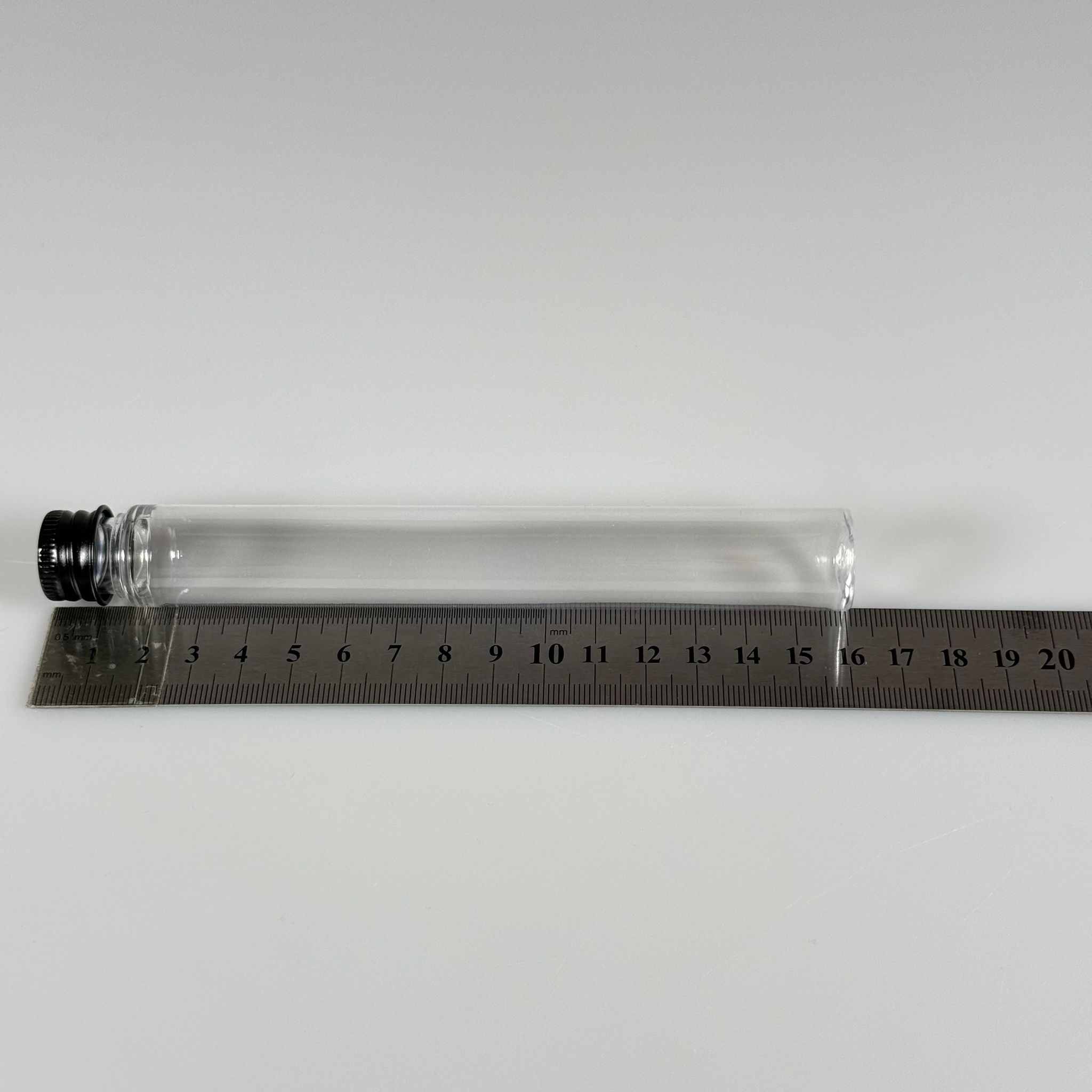16 CM TÜP - 45 CC UZUN İNCE PET ŞİŞE - CONTALI SİYAH METAL KAPAKLI - VANİLYA ÇUBUĞU, BAHARAT, DENEY TÜPÜ VB İÇİN PLASTİK TÜP - 2000 adet