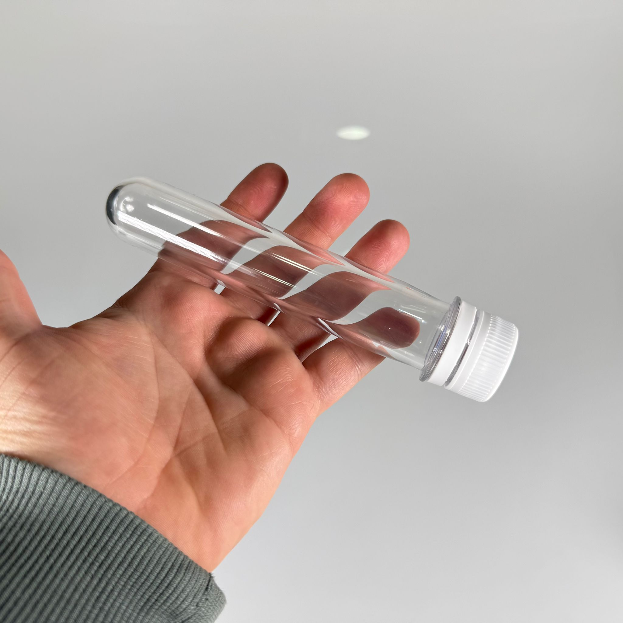16 CM TÜP - 45 CC UZUN KALIN (51 GR) PET ŞİŞE - CONTALI KİLİTLİ BEYAZ KAPAKLI - VANİLYA ÇUBUĞU, BAHARAT, DENEY TÜPÜ, AYAKKABI BAĞCIĞI VB İÇİN PLASTİK TÜP - 2000 adet