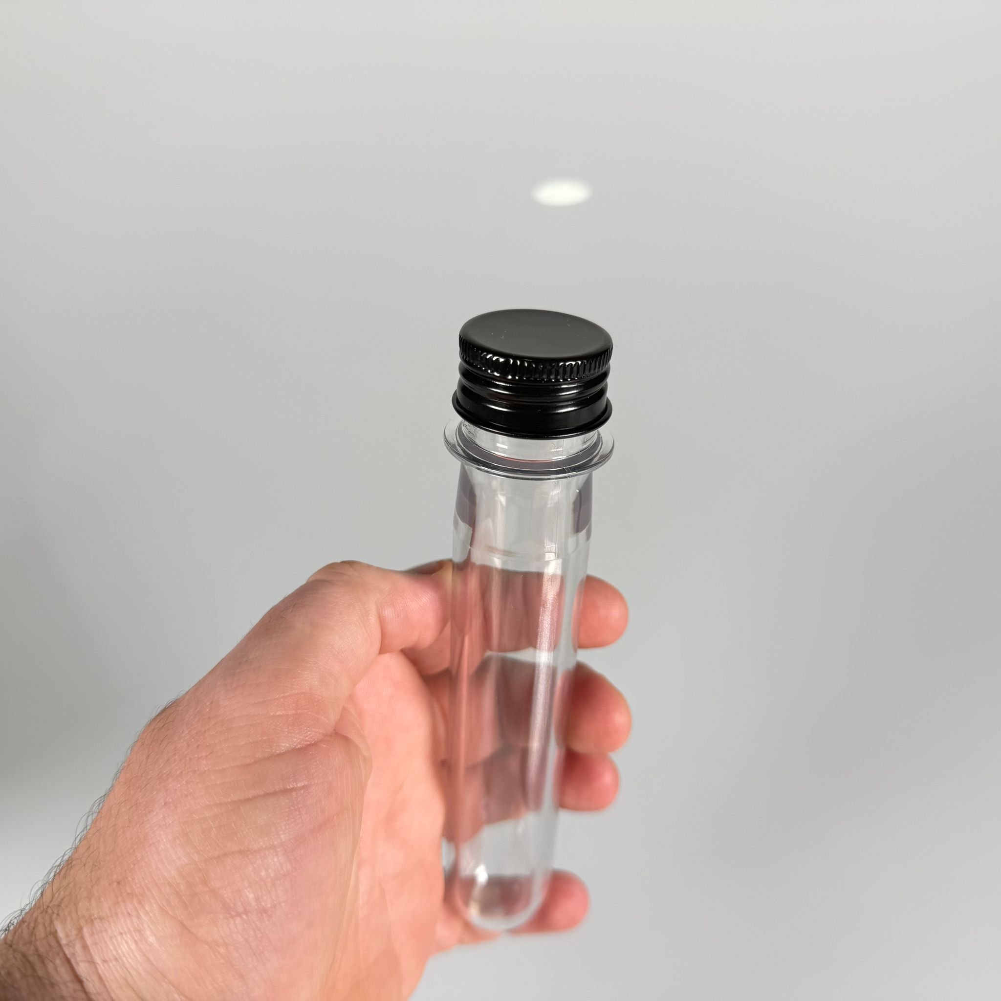 16 CM TÜP - 45 CC UZUN KALIN (51 GR) PET ŞİŞE - CONTALI METAL SİYAH ALÜMİNYUM KAPAKLI - VANİLYA ÇUBUĞU, BAHARAT, DENEY TÜPÜ, AYAKKABI BAĞCIĞI VB İÇİN PLASTİK TÜP - 2000 adet
