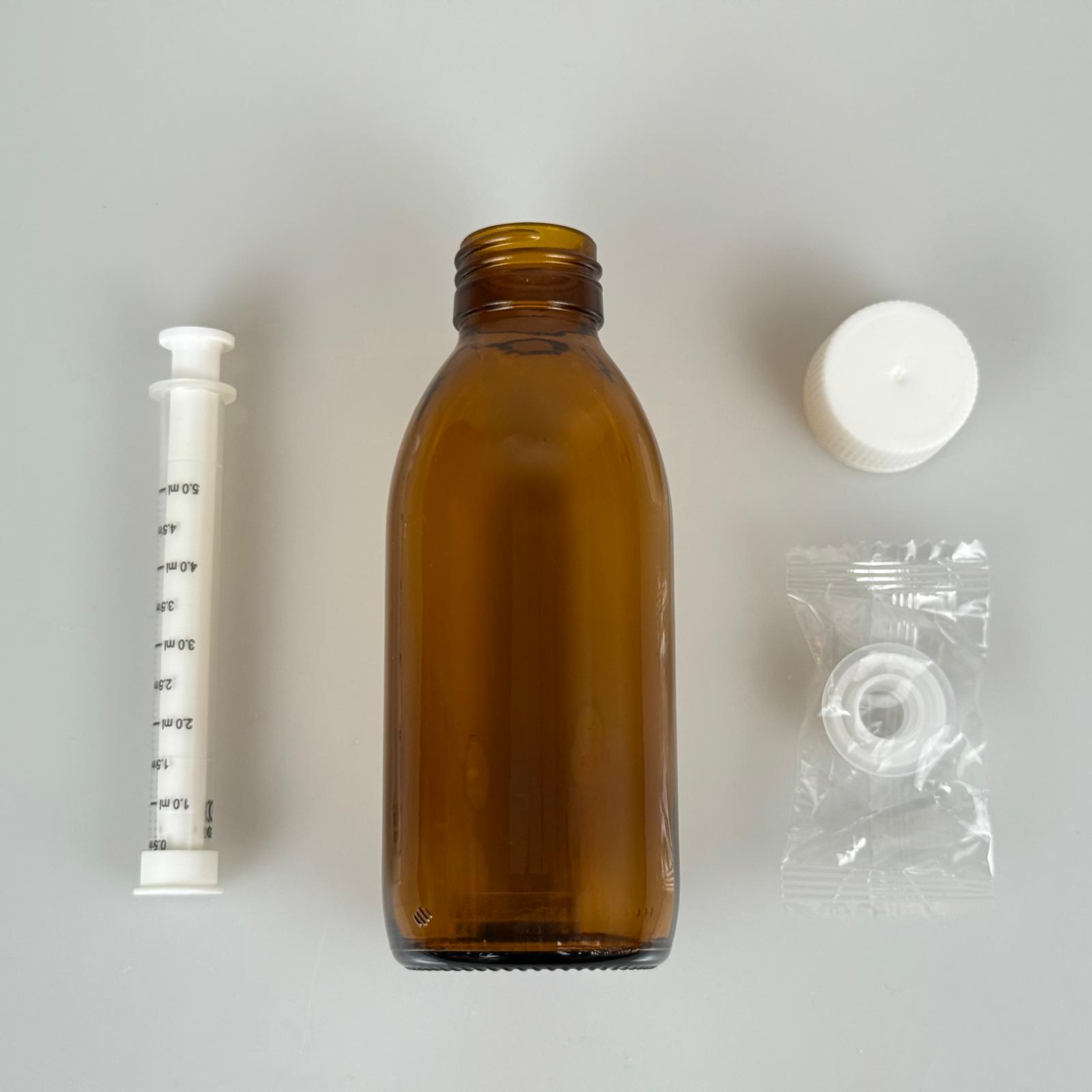 160 ML CAM ECZA ŞİŞESİ + 5 ML DOZAJ PİPETİ + DOZAJ TIPASI + CONTALI PLASTİK KAPAK TAKIM - 84 adet