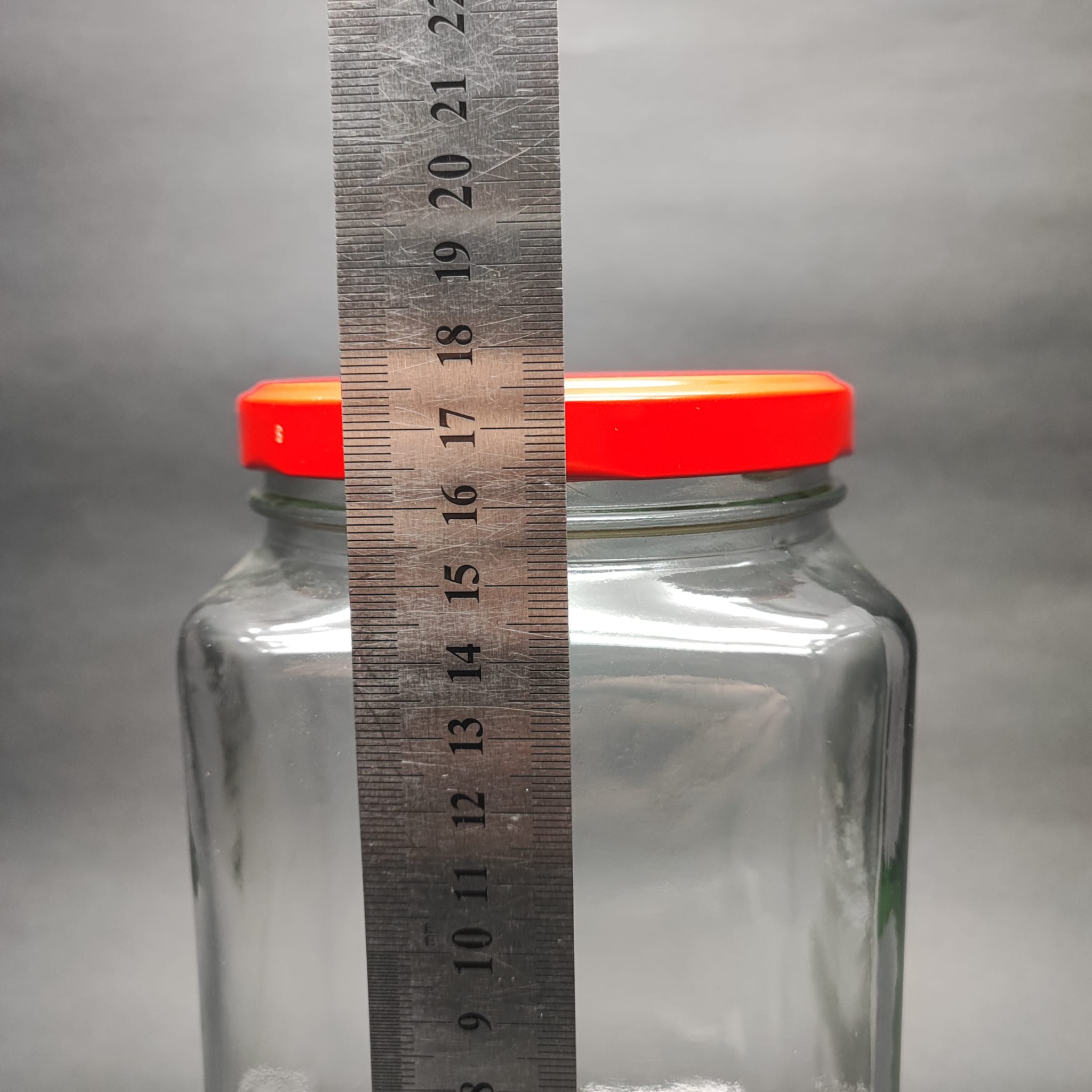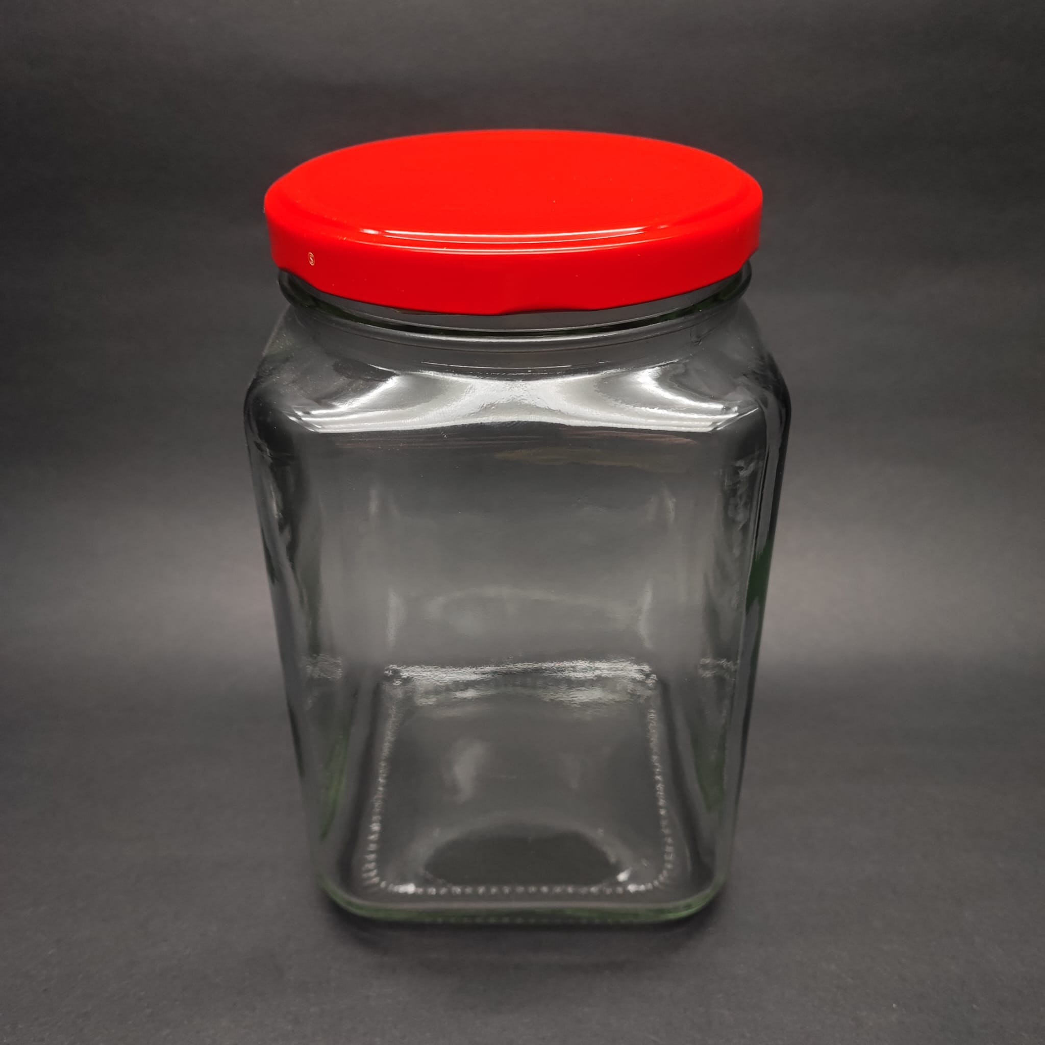 1600 CC KÖŞELİ CAM KAVANOZ - KIRMIZI METAL KAPAKLI - 1600ML KARE CAM KAVANOZ - 24 adet