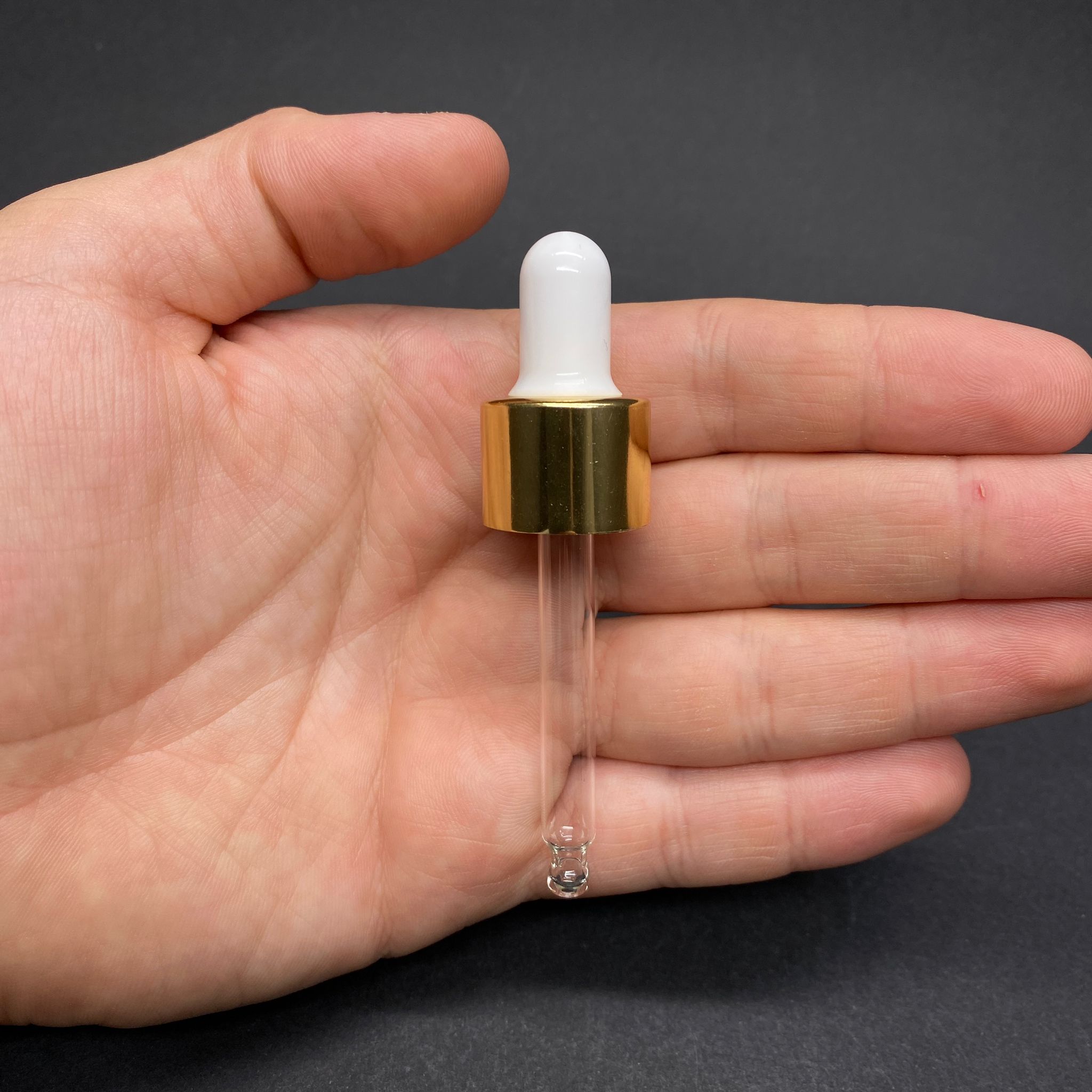 18 MM CAM DAMLALIK TAKIM - PARLAK BEYAZ EMZİK+DELİKLİ GOLD METAL KAPAK+CAM PİPET - 15 CC DROPPER ŞİŞELER İÇİN - 2990 adet