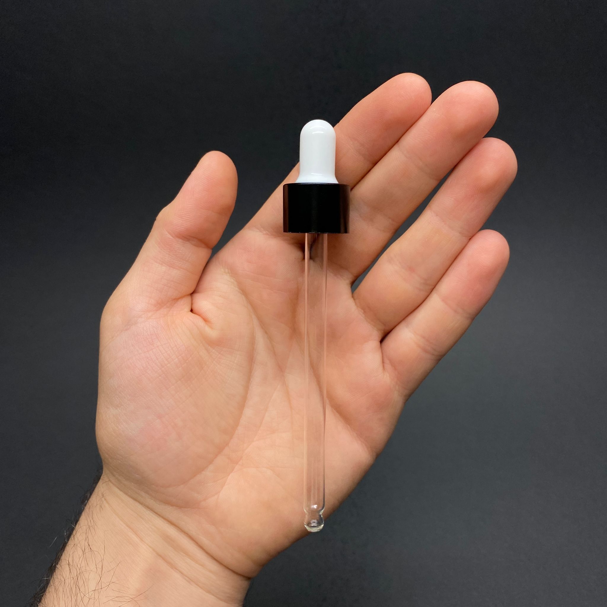 18 MM CAM DAMLALIK TAKIM - PARLAK BEYAZ EMZİK+DELİKLİ SİYAH METAL KAPAK+CAM PİPET - 100 CC DROPPER ŞİŞELER İÇİN - 1000 adet