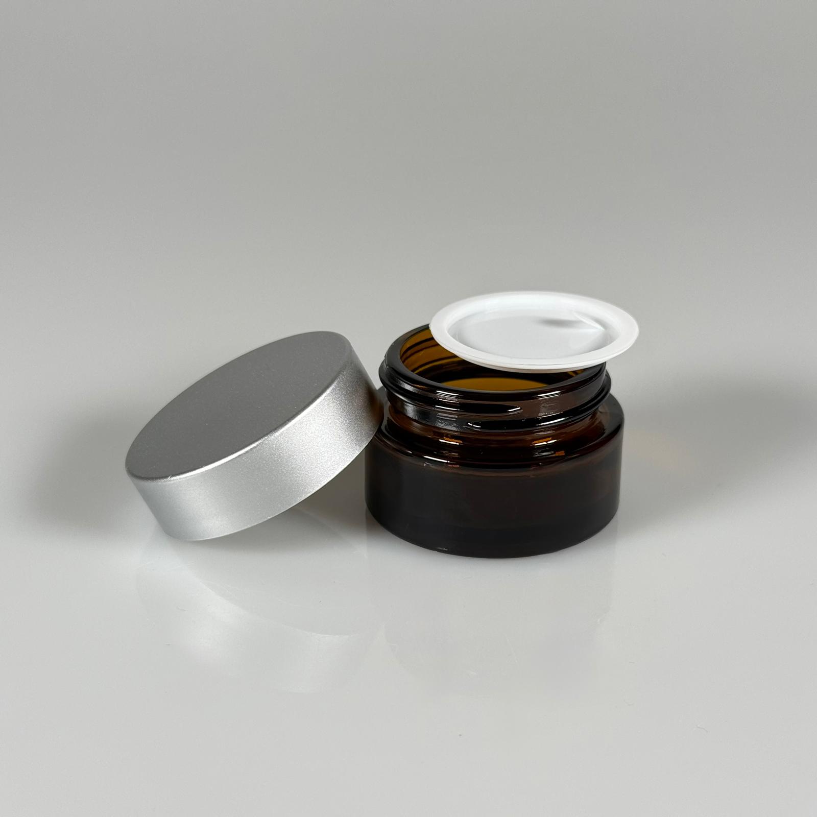 20 CC CAM AMBER KREM KAVANOZU - GÜMÜŞ KAPAKLI İÇ CONTALI - 20 ML KAHVERENGİ KREM KAVANOZU - AMBER MUM KAVANOZU - 560 adet