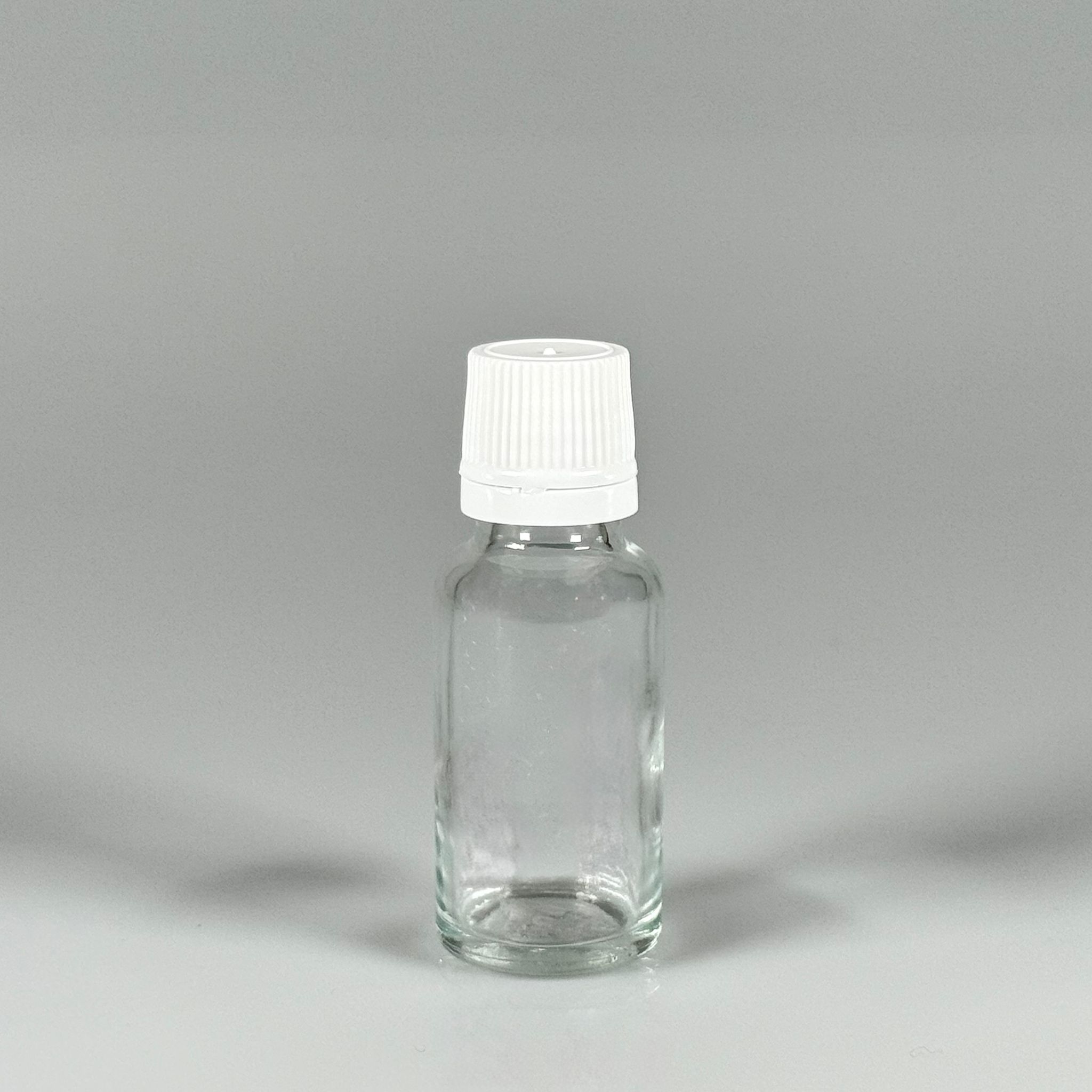 20 CC CAM ŞEFFAF KİLİTLİ, KENDİNDEN CONTALI BEYAZ KAPAKLI - 20 ML DAR AĞIZLI İLAÇ ŞİŞESİ - 312 adet