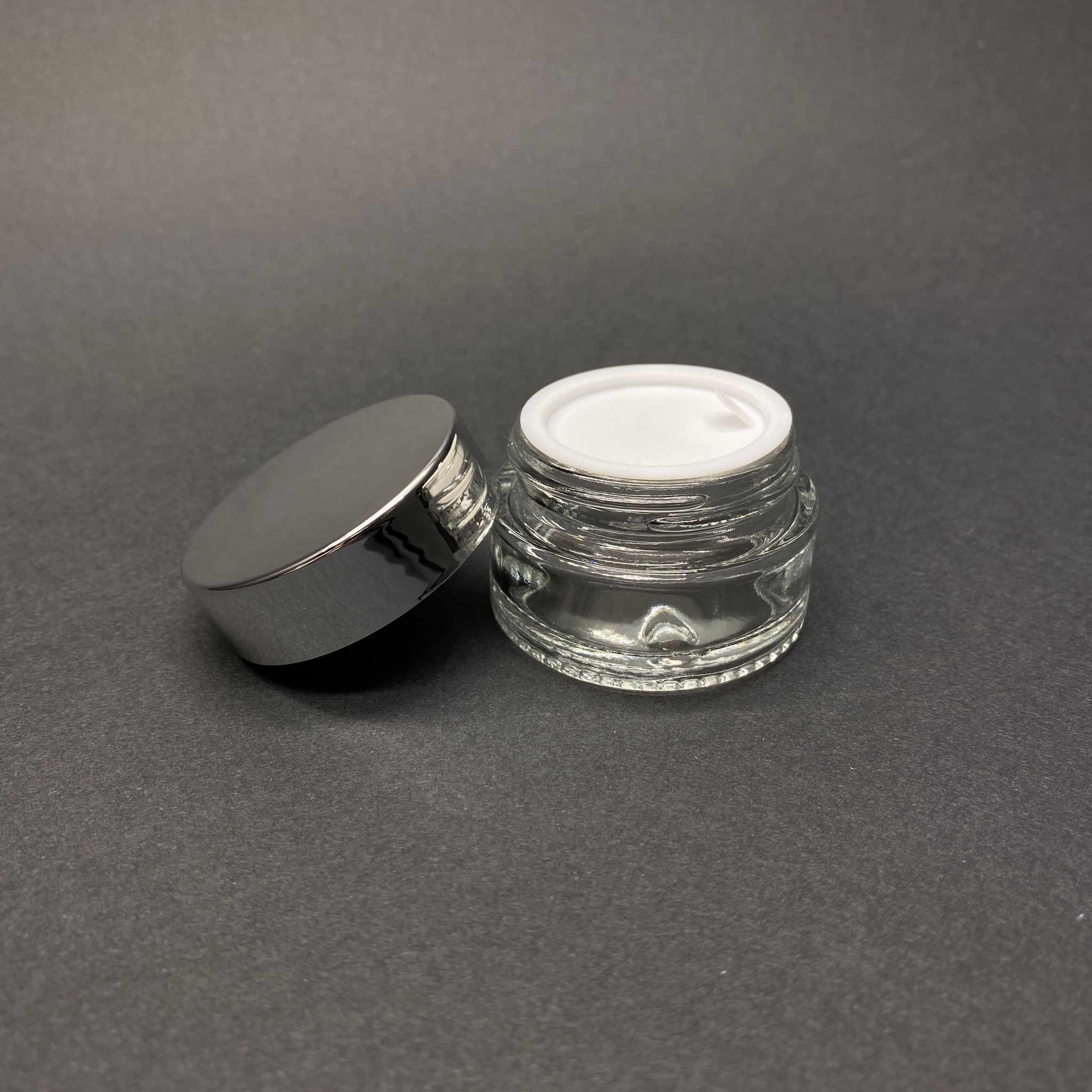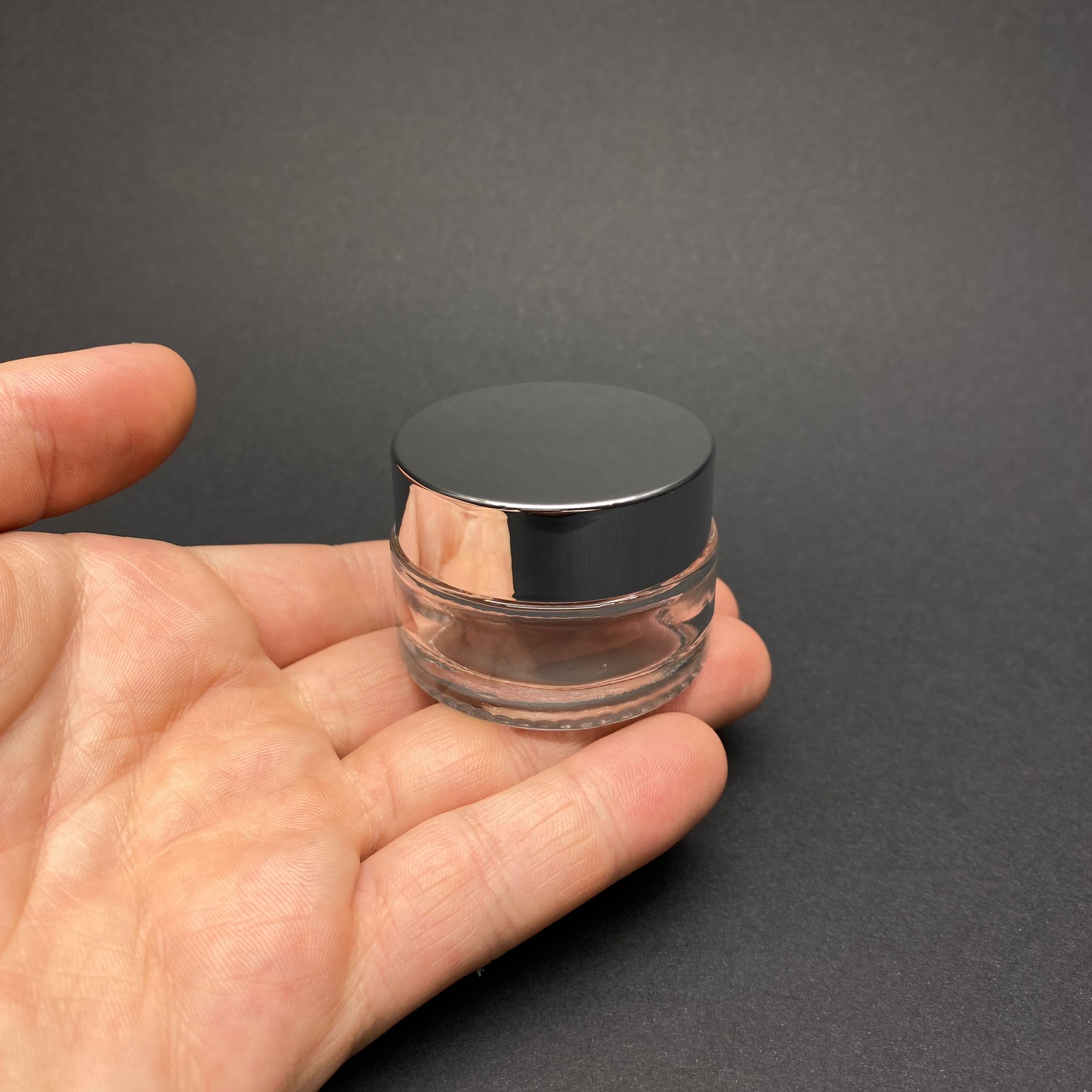 20 CC CAM ŞEFFAF KREM KAVANOZU - GÜMÜŞ AYNALI KAPAKLI İÇ CONTALI - 20 ML ŞEFFAF CAM KAVANOZ - KOZMETİK KAVANOZ - 280 adet