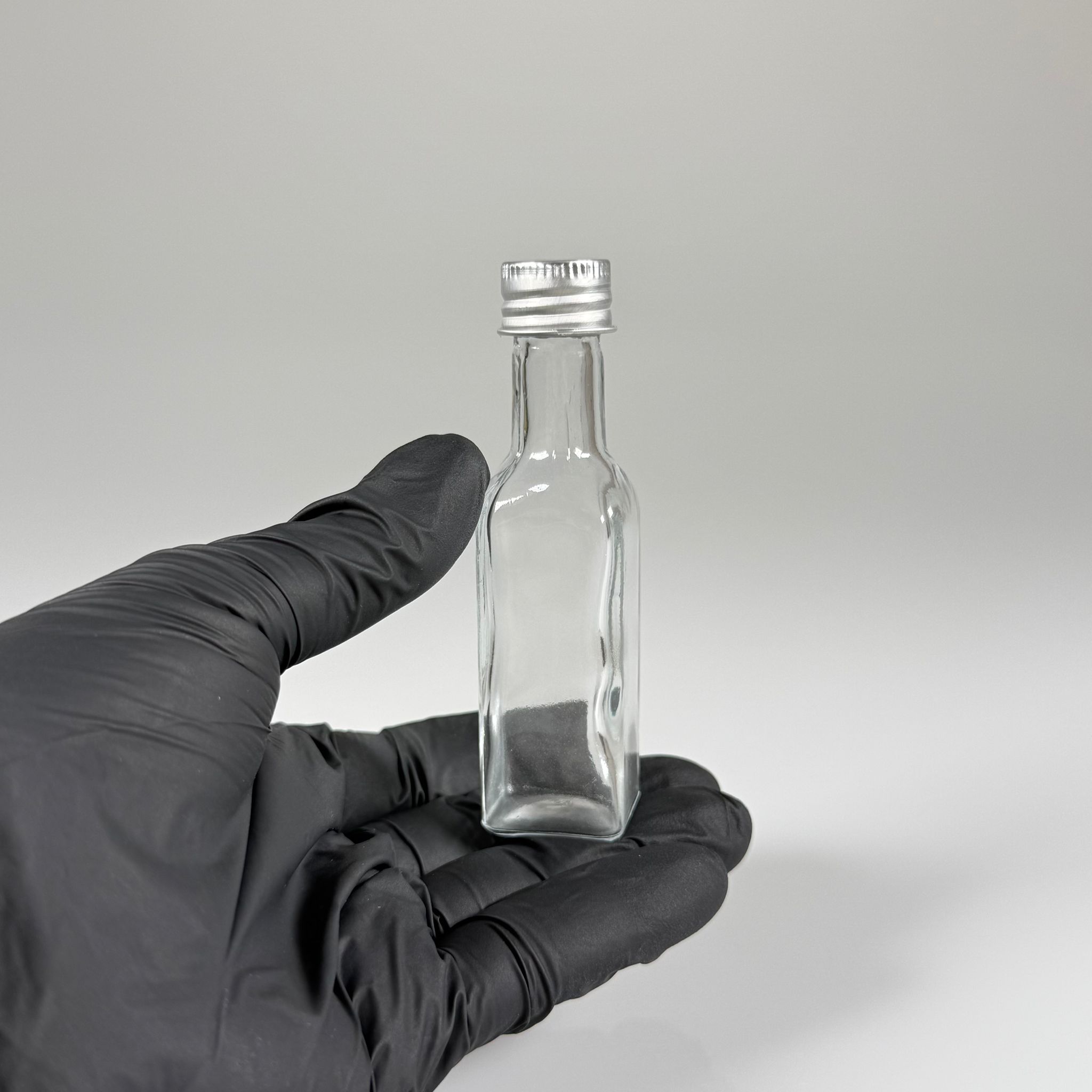 20 CC MARASKA KÖŞELİ KARE CAM ŞİŞE - CONTALI METAL ALÜMİNYUM GÜMÜŞ KAPAKLI + KOLONYA TIPALI - 20 ML KAPAKLI CAM ŞİŞE (SİLME 23 ML ALIR) - 330 adet