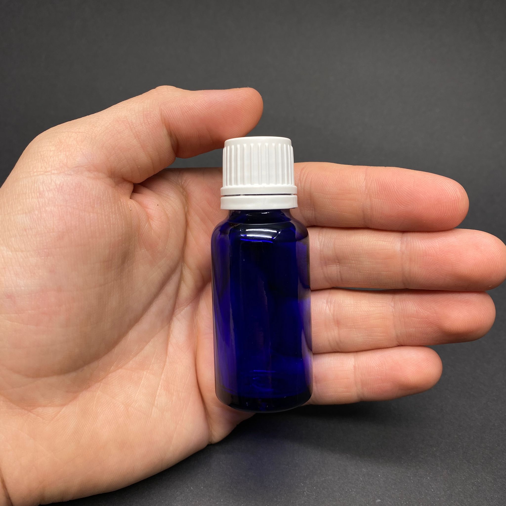 20 CC MAVİ İÇTEN DAMLALIKLI (OPSİYONEL DAMLALIK) - BEYAZ KİLİTLİ KAPAKLI CAM ŞİŞE - 20 ML KOLONYA TIPALI CAM ŞİŞE - 156 adet