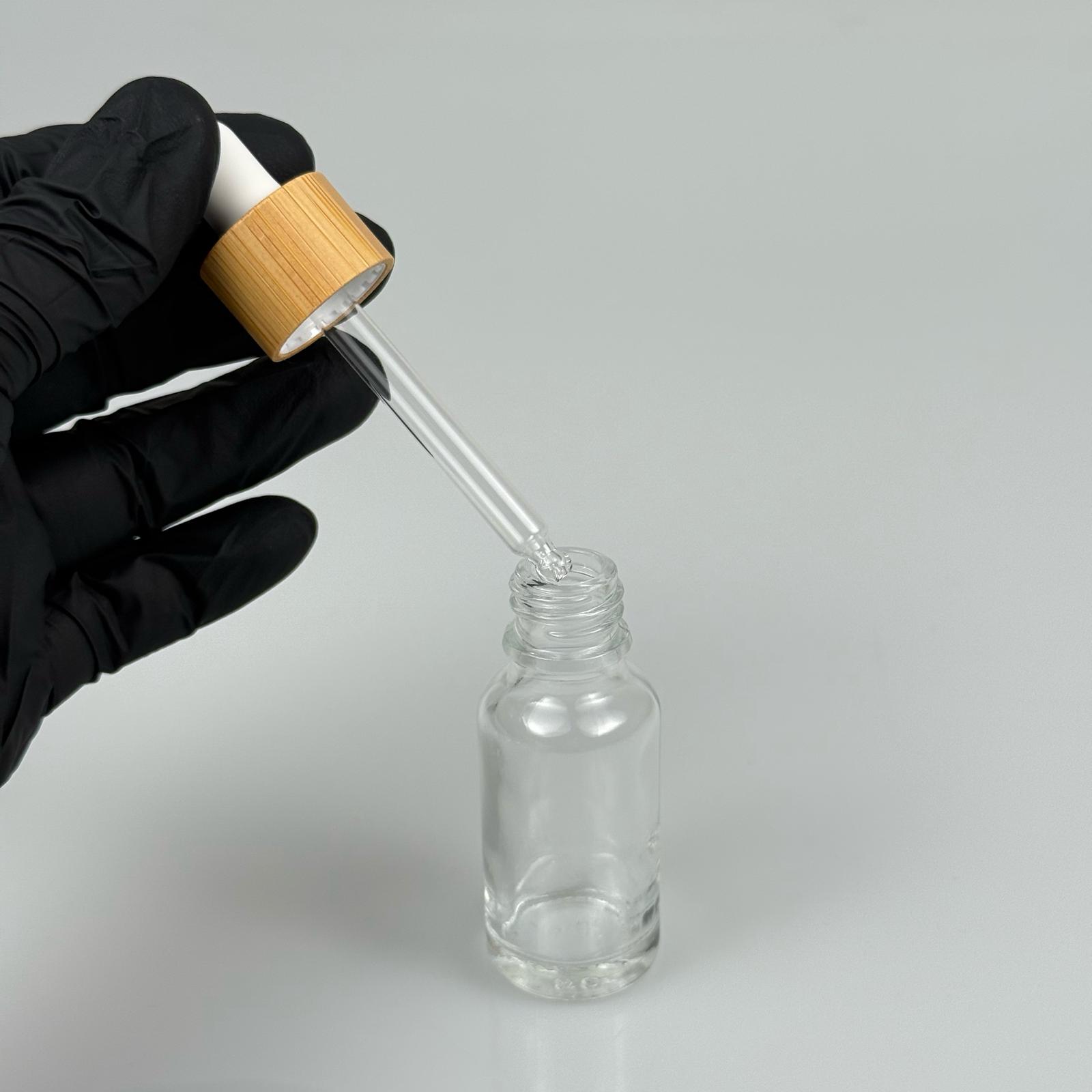 20 CC ŞEFFAF CAM DAMLALIKLI ŞİŞE - BEYAZ EMZİK - BAMBU AHŞAP KAPAK - 20 ML BAMBU KAPAKLI CAM DAMLALIKLI ŞİŞE - 312 adet