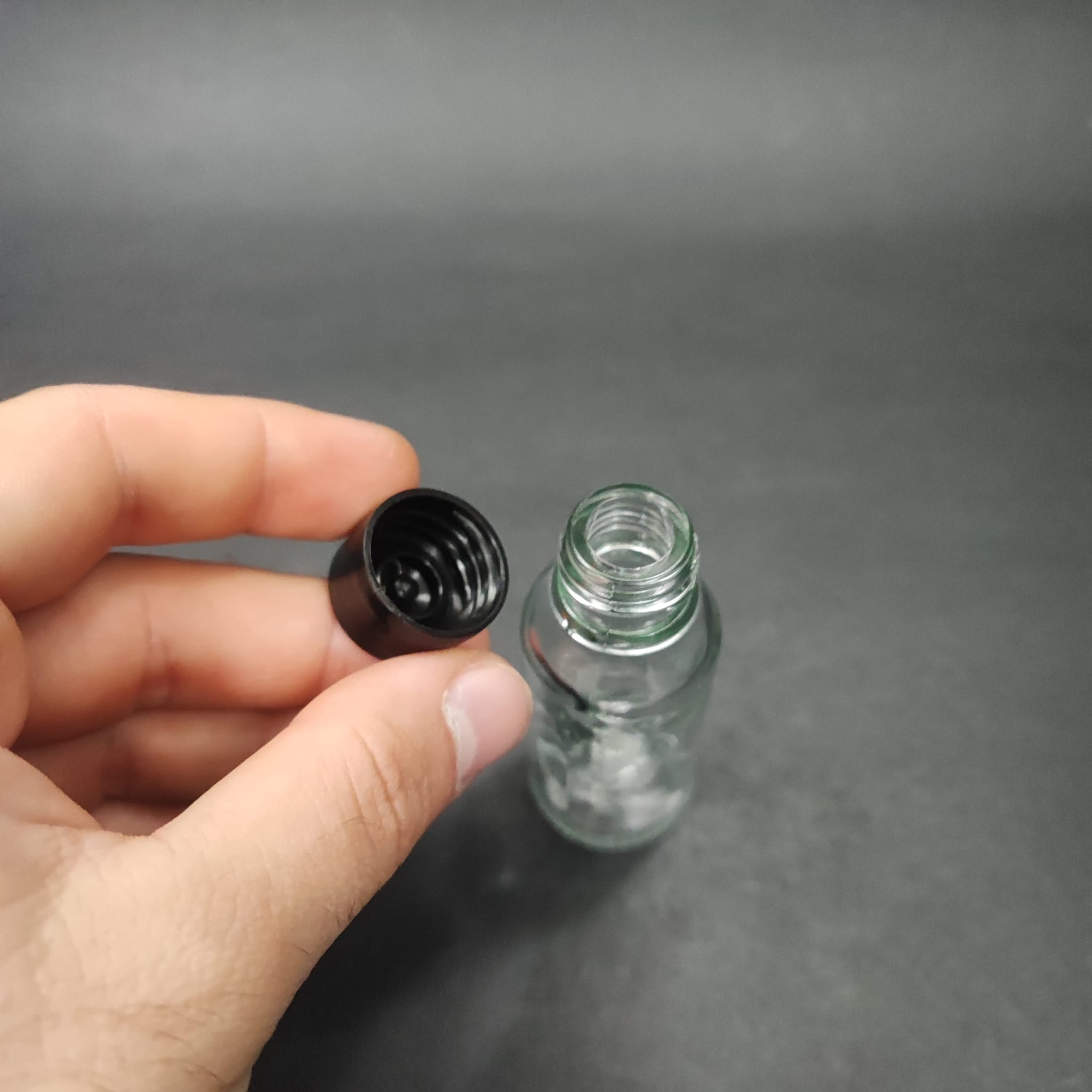 20 CC ŞEFFAF CAM ŞİŞE + KENDİNDEN CONTALI SIZDIRMAZ SİYAH KAPAK - 20 ML KAPAKLI CAM ŞİŞE - 312 adet