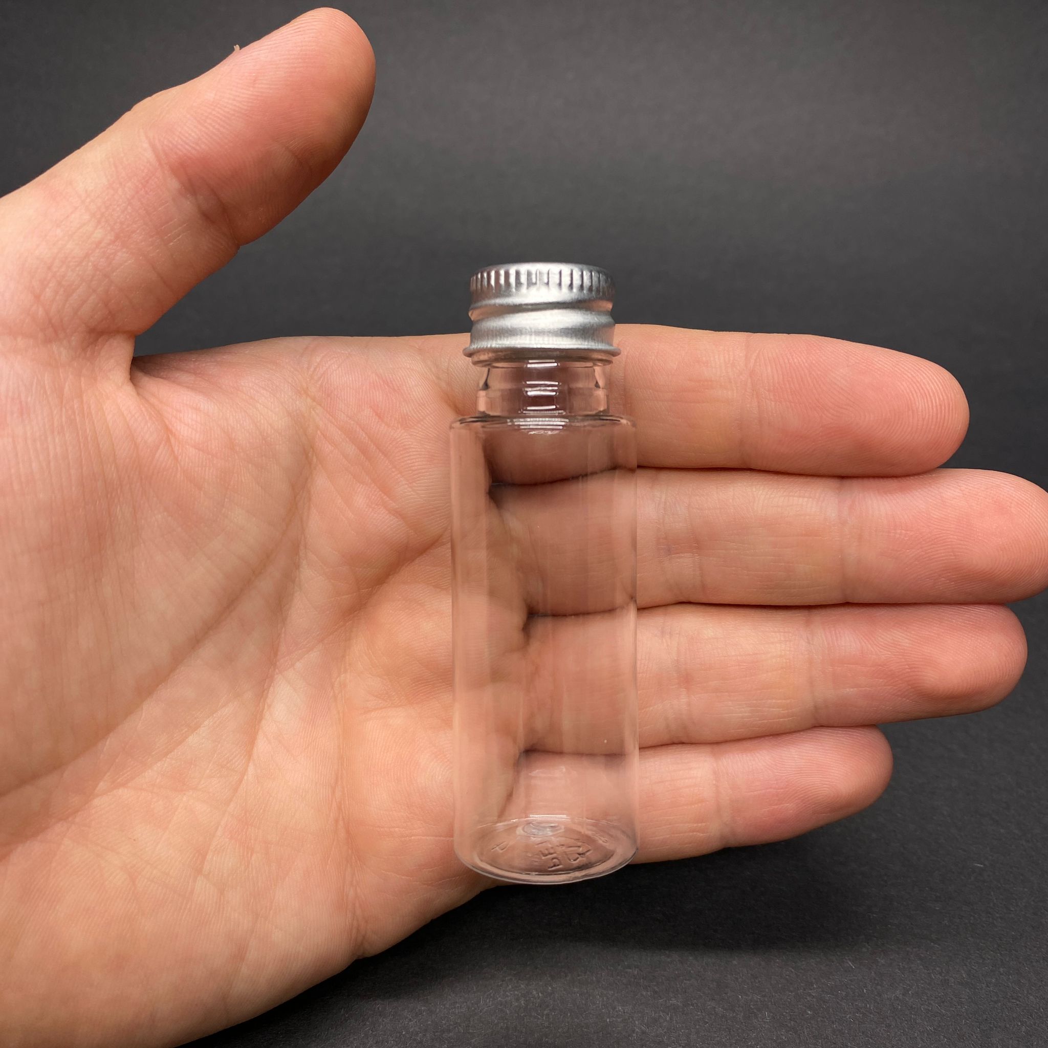 20 CC ŞEFFAF PET ŞİŞE - GÜMÜŞ METAL KAPAKLI - 20 ML PET ŞİŞE - 1850 adet