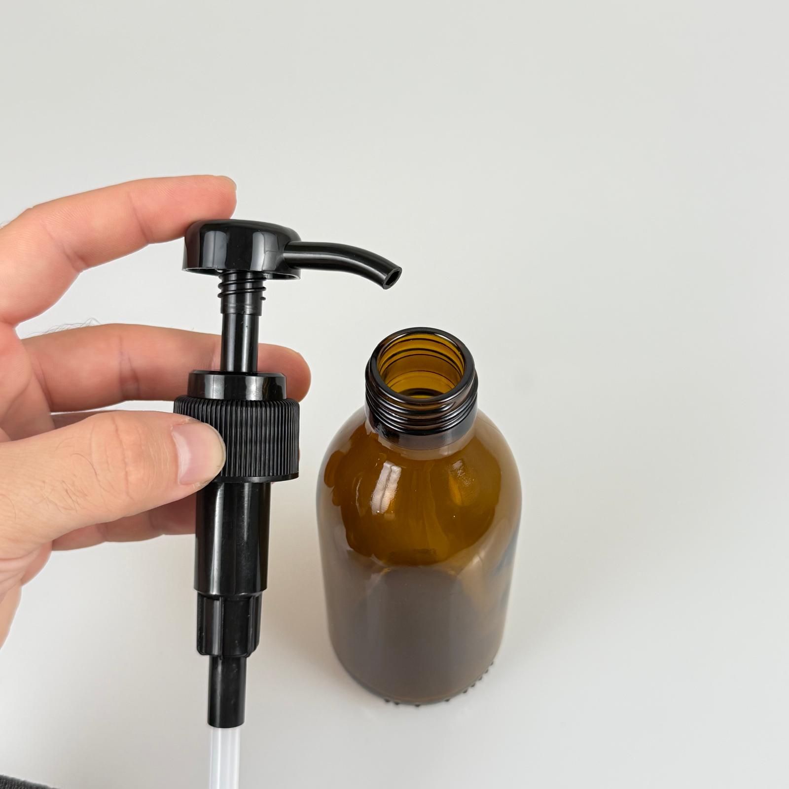 200 CC AMBER CAM ŞİŞE - SİYAH DOZAJ POMPALI (HER BASMADA 4 CC SIVI ATAR) - 200 ML POMPALI ŞİŞE - ŞURUP, ŞAMPUAN, KREM GİBİ YOĞUN KIVAMLI SIVILARDA KULLANILIR - 67 adet