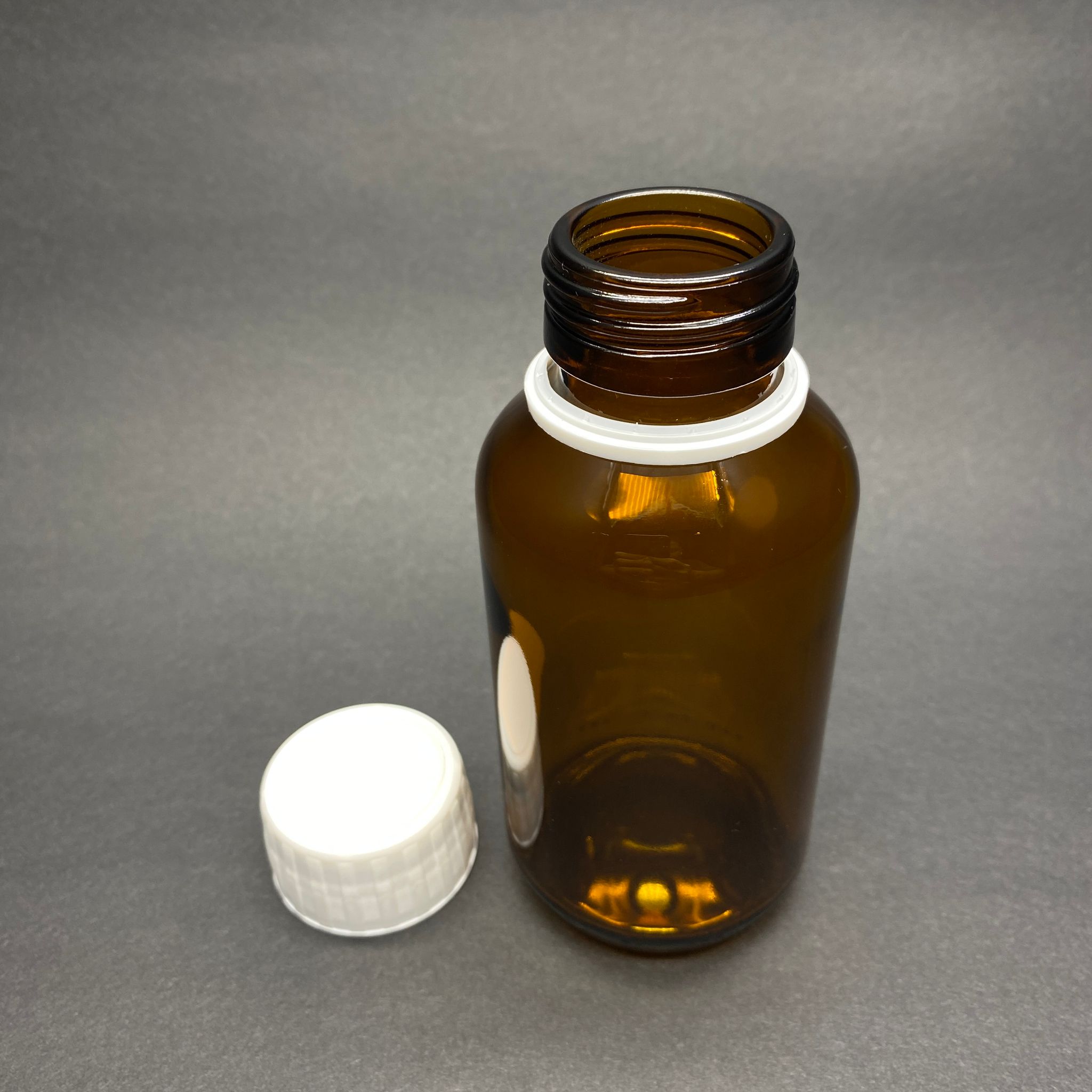 200 CC AMBER CAM TABLET ŞİŞESİ (GENİŞ AĞIZ - AĞIZ ÇAPI 35 MM) + KİLİTLİ KÖPÜK CONTALI KAPAKLI - 63 adet