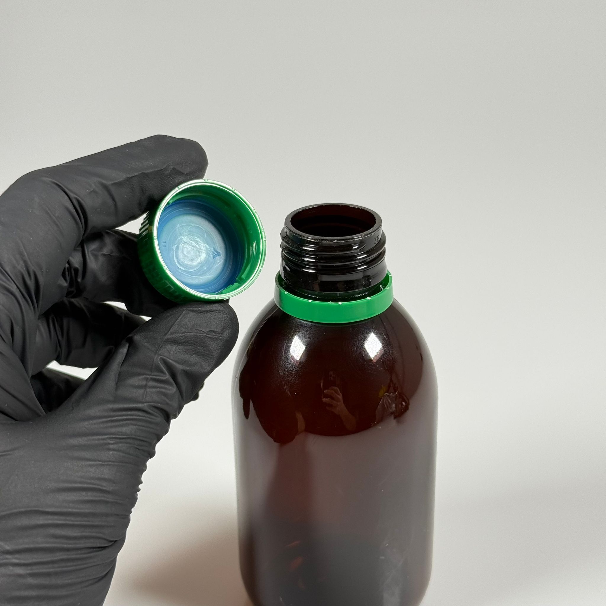 200 CC AMBER PET ECZA ŞİŞESİ - YEŞİL KİLİTLİ CONTALI KAPAKLI - 200 ML KAHVERENGİ PLASTİK ŞURUP ŞİŞESİ (21 GR) - 456 adet