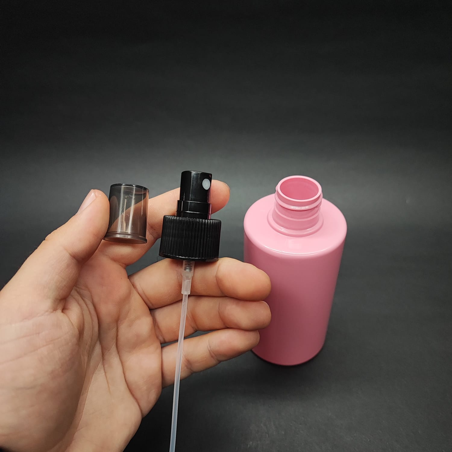 200 CC KÜT BOYUNLU SİLİNDİR PET ŞİŞE (24 GR) - SİYAH SPREYLİ - 200 ML PLASTİK ŞİŞE - PEMBE - 308 adet