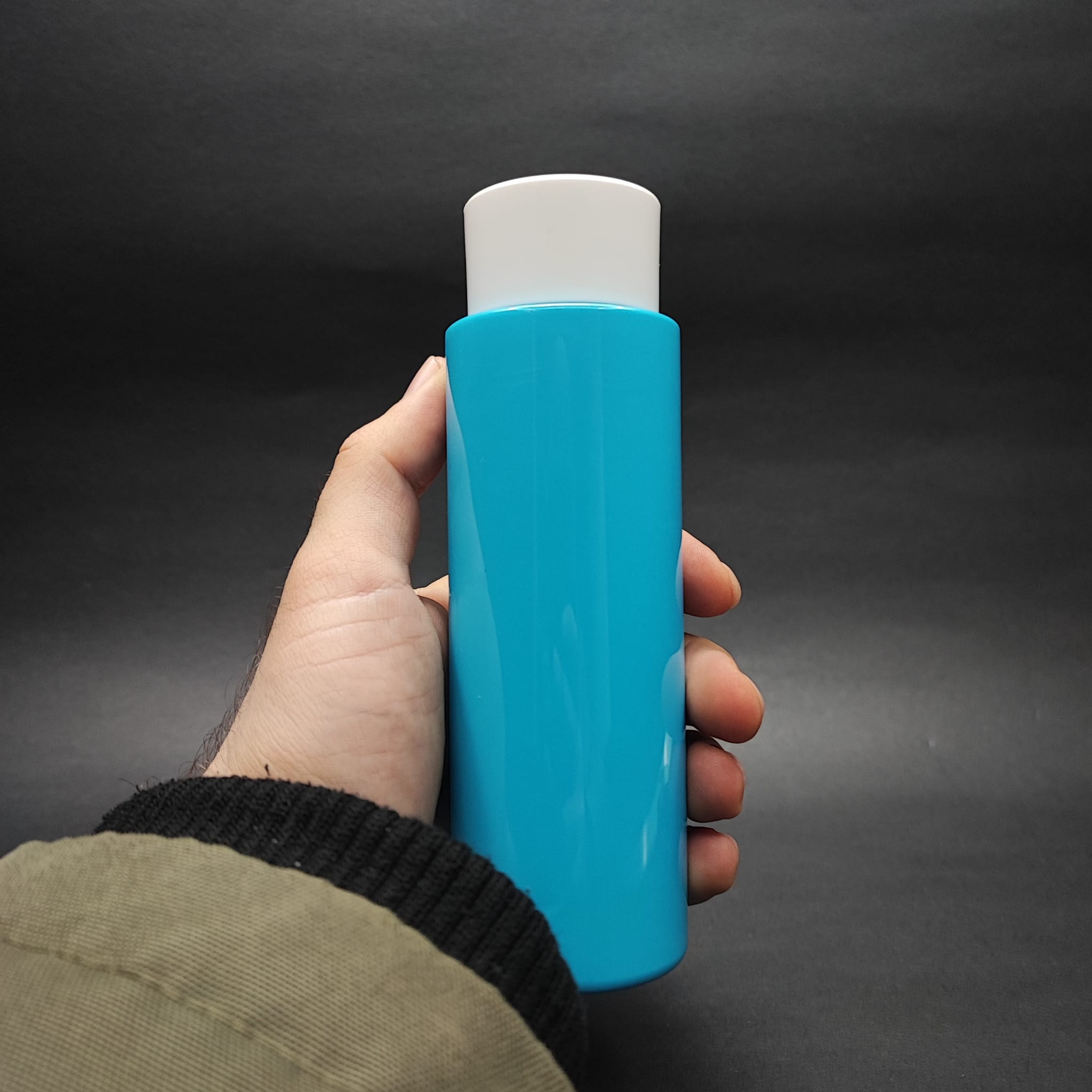 200 CC KÜT BOYUNLU UZUN SİLİNDİR PET ŞİŞE (24 GR) - BEYAZ KOLONYA LOSYON KAPAK + TIPA - 200 ML PLASTİK ŞİŞE - MAVİ - 390 adet