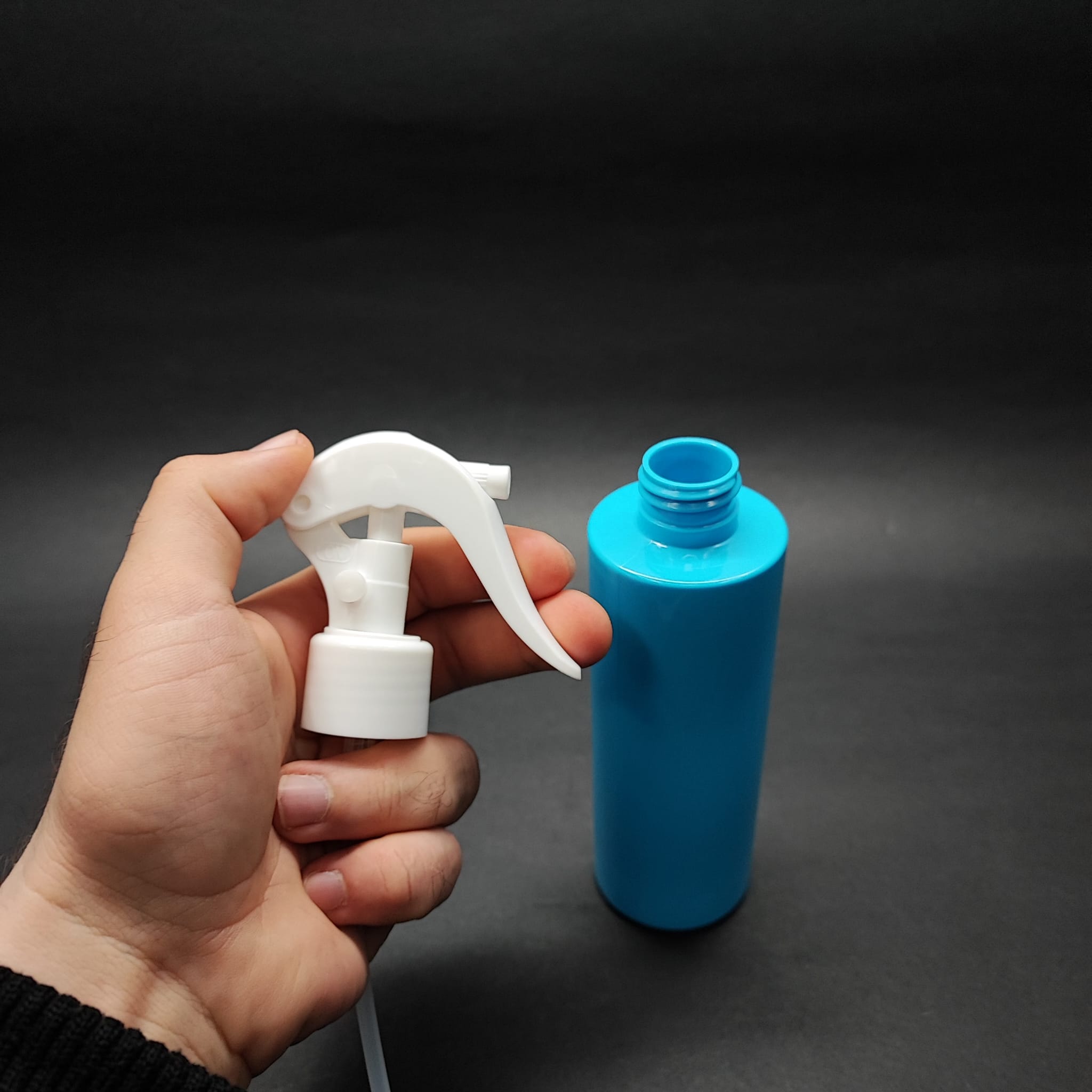 200 CC KÜT BOYUNLU UZUN SİLİNDİR PET ŞİŞE (24 GR) - BEYAZ TRİGER SPREYLİ (DUMAN PÜSKÜRTÜR) - 200 ML PLASTİK ŞİŞE - MAVİ - 390 adet