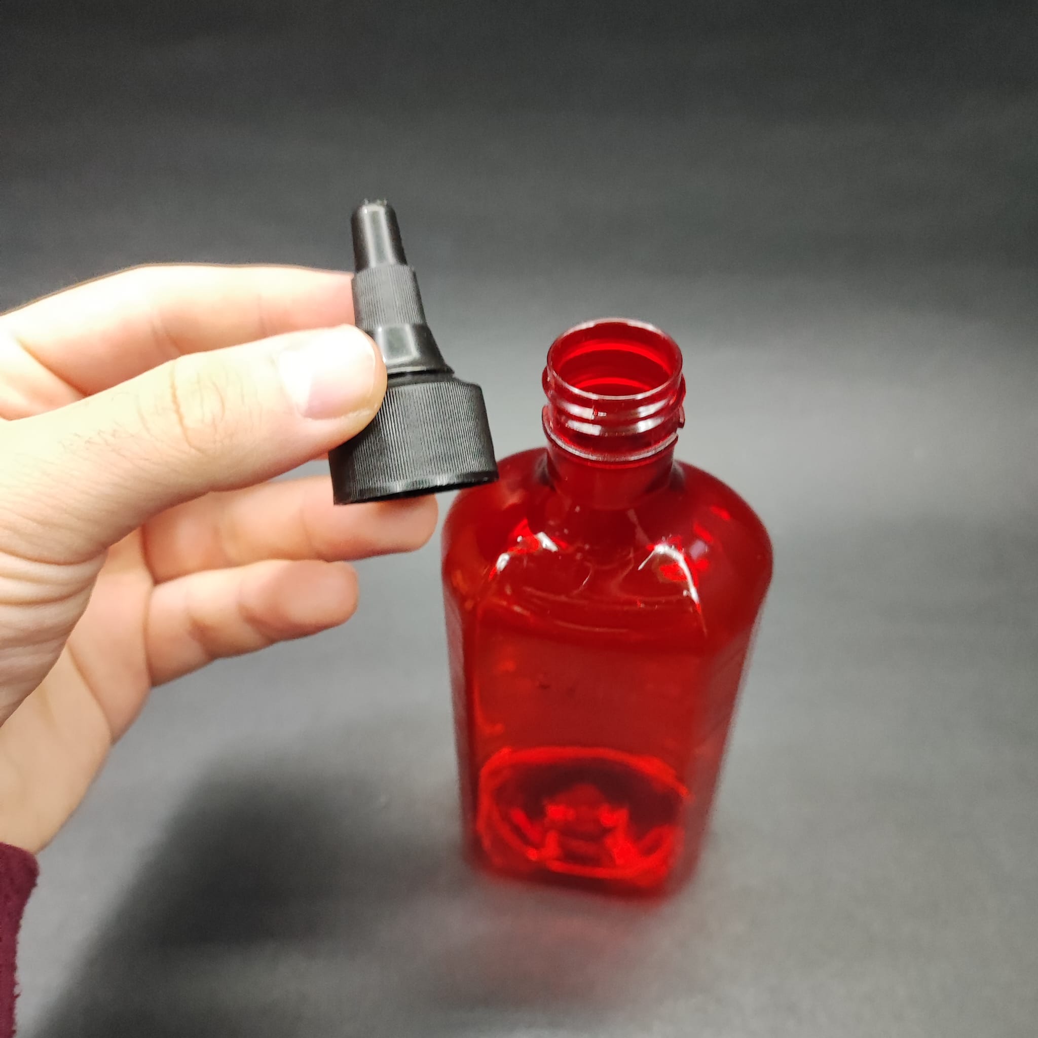 200 CC ÖLÇEKLİ PET ŞİŞE - SİYAH AKITICI ASANSÖR KAPAKLI - 200 ML VE OZ ÖLÇÜLÜ KIRMIZI PET ŞİŞE - 400 adet