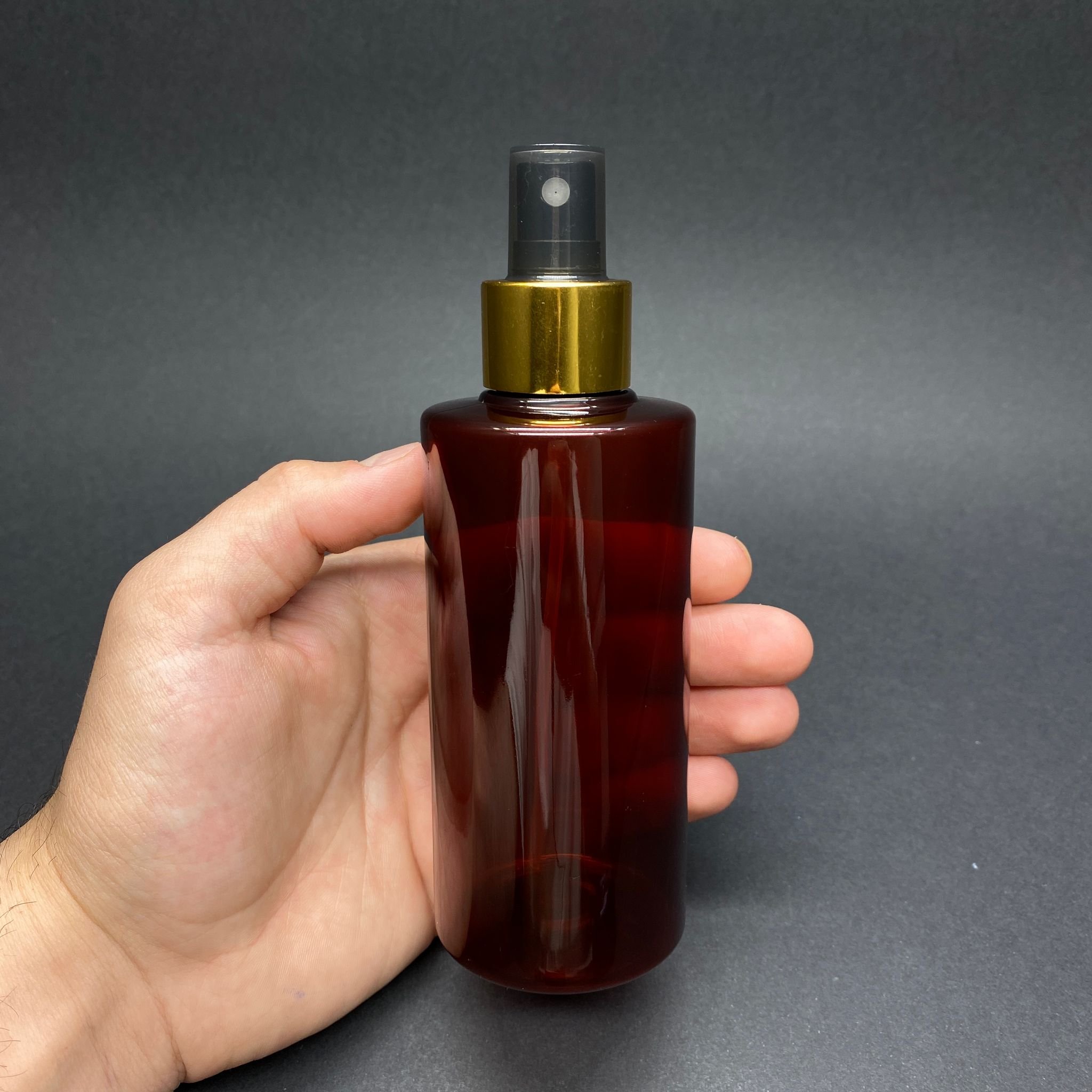 200 CC SİLİNDİR KESKİN KÜT MODEL SERT (27 GR) PET ŞİŞE - GOLD METALİK SPREYLİ - AĞIZ ÇAPI 24 MM - AMBER - 472 adet