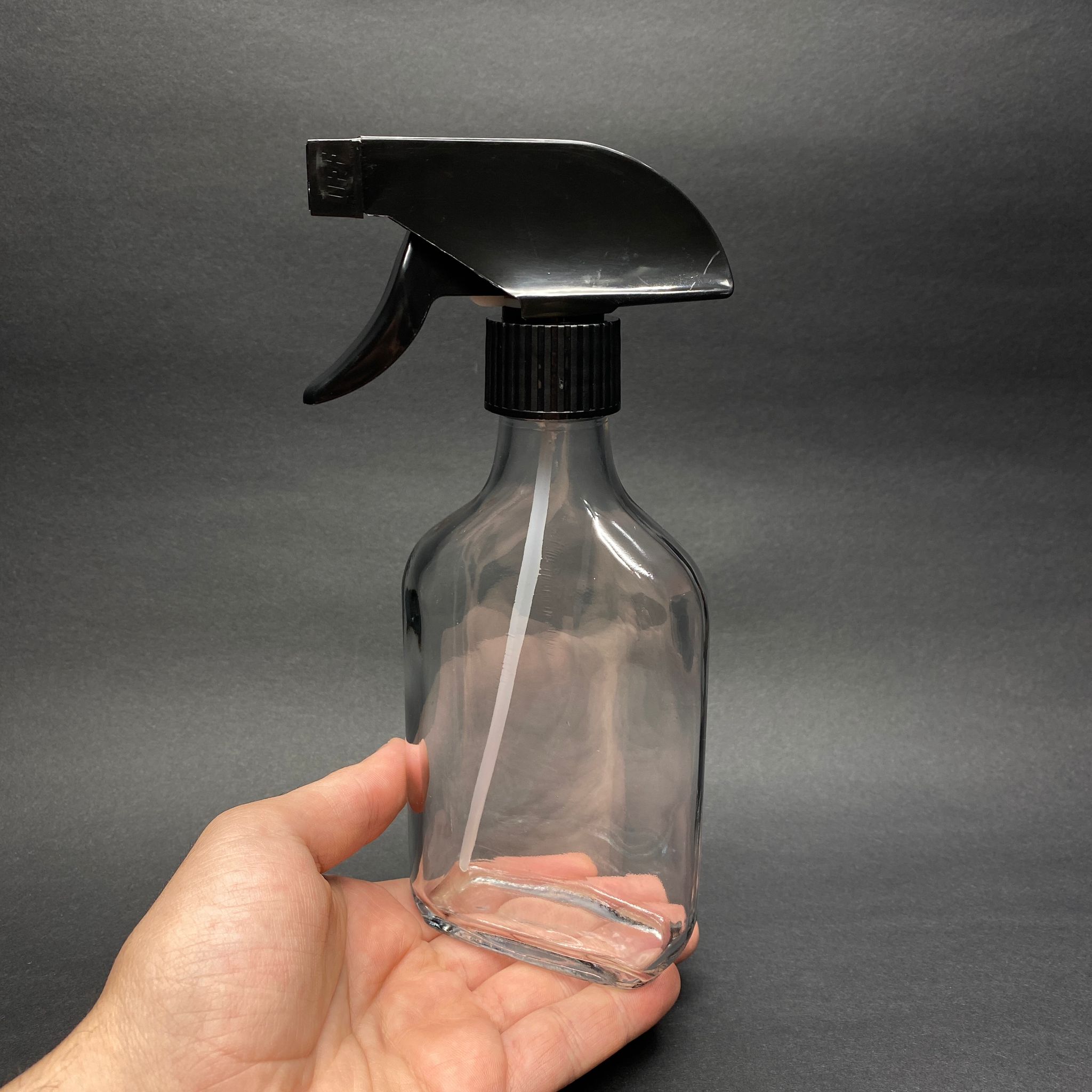 200 CC YASSI CAM ŞİŞE - SİYAH TRİGER TETİK SPREYLİ - 200 ML TEMİZLİK , ODA PARFÜMÜ , CAMSİL VB İÇİN YASSI CAM ŞİŞE - 180 adet