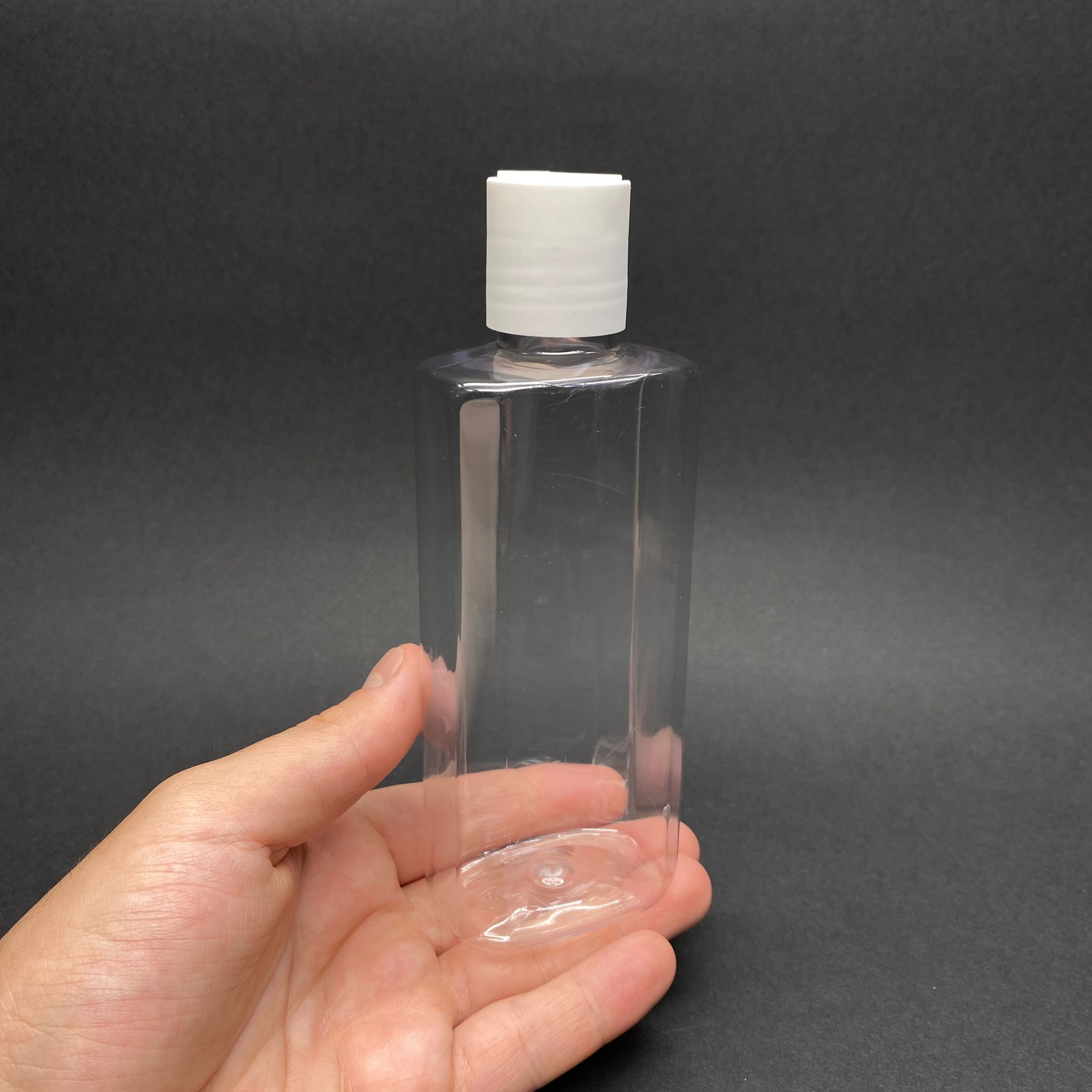 200 CC YASSI MODEL PET ŞİŞE - BEYAZ DİSKTOP ŞAMPUAN KAPAKLI - AĞIZ ÇAPI 24 MM - ŞEFFAF - 1008 adet