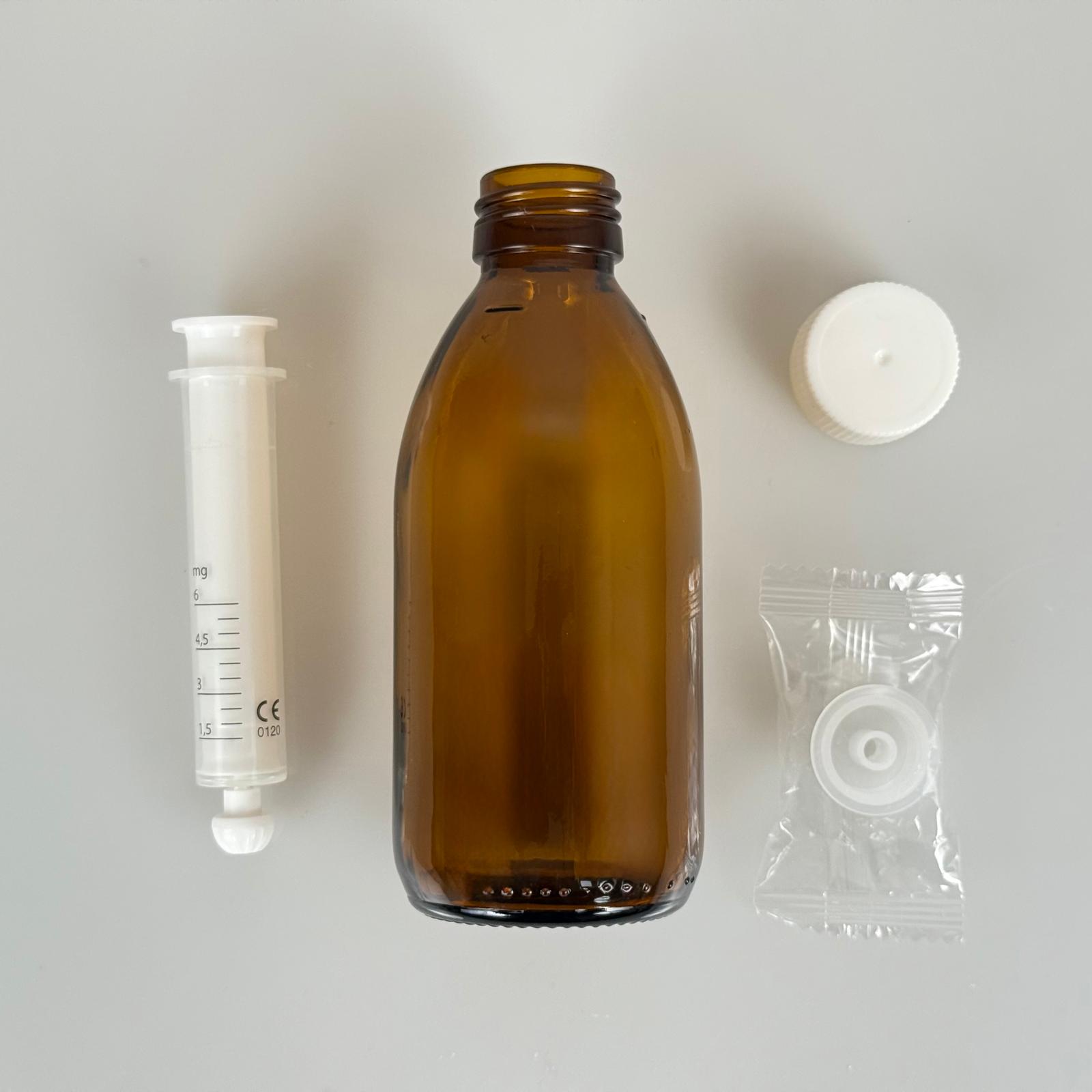 200 ML CAM ECZA ŞİŞESİ + 6 ML DOZAJ PİPETİ + DOZAJ TIPASI + CONTALI PLASTİK KAPAK TAKIM - 67 adet