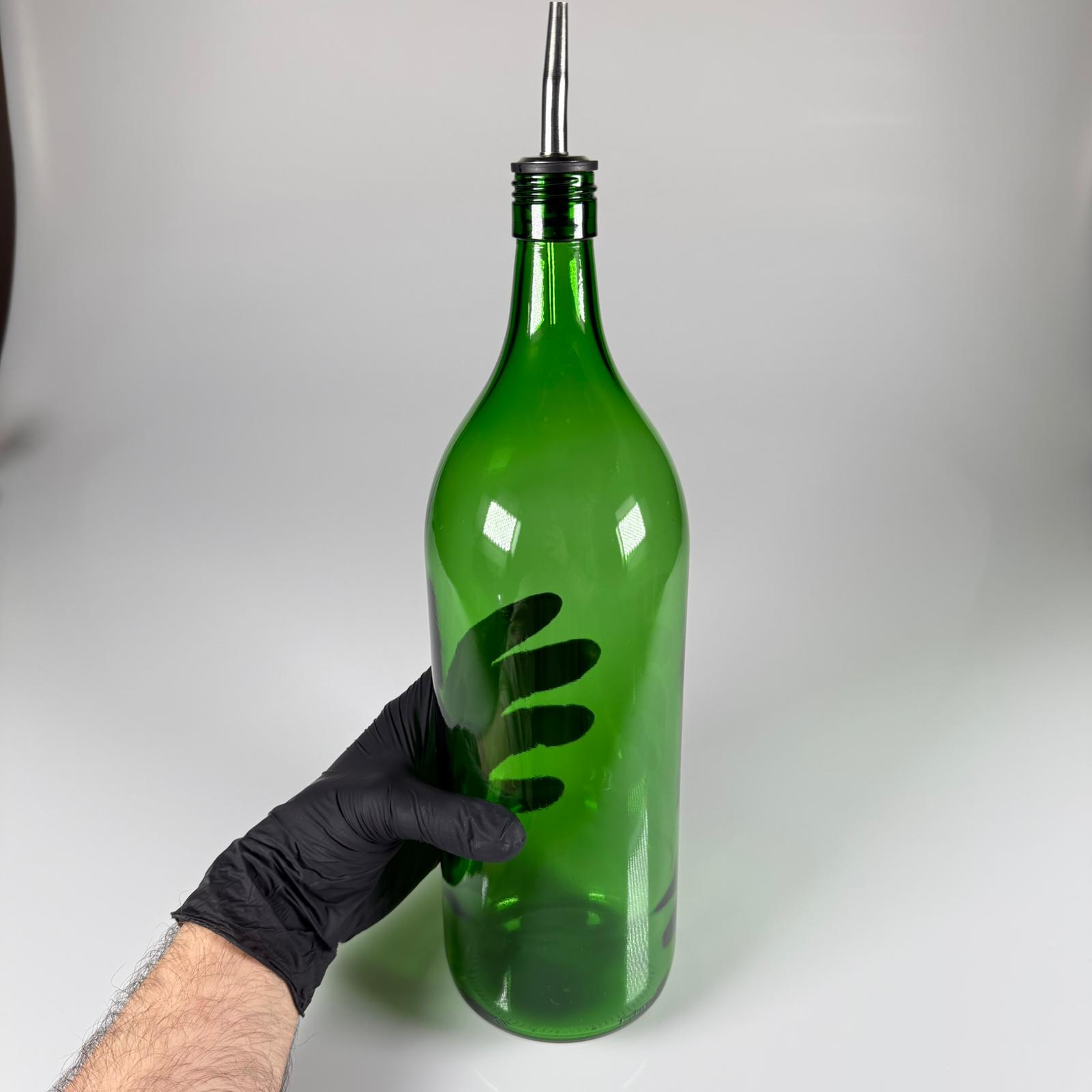 2000 CC YEŞİL CAM ŞİŞE - ÇELİK YAĞDANLIK TIPALI AKITICILI - 2 LİTRE YEŞİL CAM ŞİŞE - 2 LİTRE YAĞLIK SİRKELİK ŞİŞESİ - 32 adet