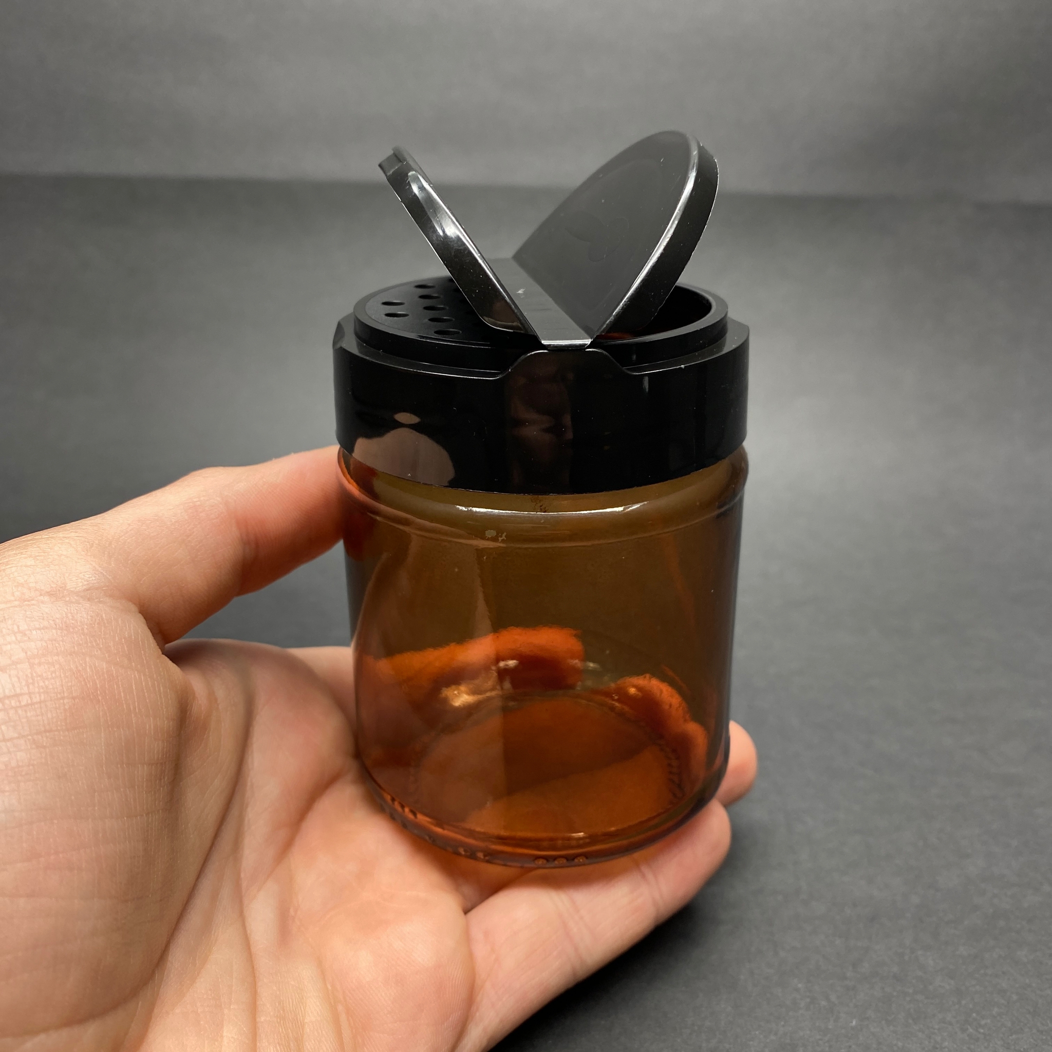 210 CC AMBER CAM BAHARATLIK KAVANOZ - 210 ML KÖŞELİ BAHARAT KAVANOZU - SİYAH AÇILIR KAPANIR KAPAKLI - 150 adet