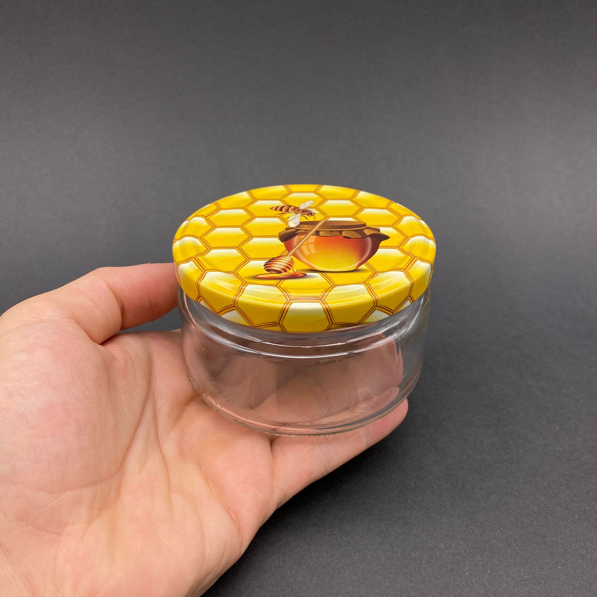 230 CC CAM KAVANOZ - PETEK/BAL DESENLİ METAL KAPAKLI - 230 ML CAM KAVANOZ - GENİŞ MAGNOLİA KAVANOZU - 60 adet